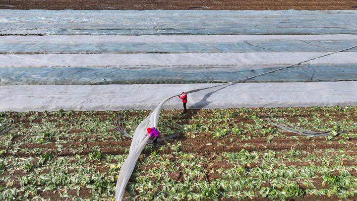 我国持续实施动态监测、精准施策和东西协作等帮扶措施,确保主要帮扶政策稳定,牢牢守住了脱贫地区不发生规模性返贫致贫的底线。过渡期以来,监测帮扶机制有效运行,累计识别帮扶超过700万监测对象稳定消除返贫致贫风险,其余均落实了针对性帮扶措施。  △2025年12月11日,山东东营广饶县,农民为作物覆盖防寒无纺布。