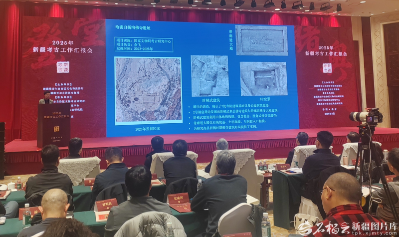 2025年新疆考古工作汇报会现场。石榴云/新疆日报讯记者 贾春霞摄 会议由自治区文化和旅游厅、自治区文物局主办,新疆文物考古研究所、国家文物局考古研究中心、新疆龟兹研究院承办。开幕式上,新疆龟兹研究院副院长李文瑛介绍了过去一年新疆考古工作的整体情况:新疆文物考古研究所联合区内外10余家单位,共实施主动性考古发掘项目12项,承担配合基本建设和文物保护工程的考古调查、勘探、发掘项目205项,并持续推动“一带一路”人文交流与合作。 本次发布的三座墓葬尤为引人注目。墓志显示,墓主人分别为北庭副都护程奂、安西副都护尹公及西州都督府长史李重晖,其仕宦履历生动揭示了唐代中期中央政权对新疆地区的有效管辖与治理实践。