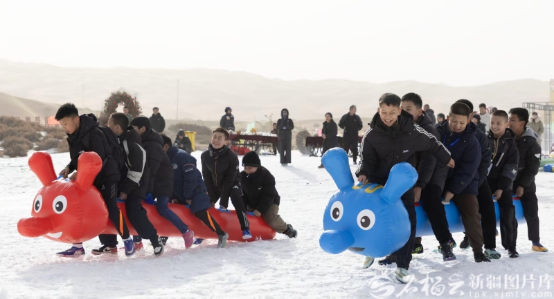 2月7日,“石榴籽·2026年吐鲁番鄯善库木塔格冰雪趣味运动会”开幕。马元祥摄 这里是“石榴籽·2026年吐鲁番鄯善库木塔格冰雪趣味运动会”的现场。本次运动会由吐鲁番市文化体育和旅游局主办、鄯善县文化体育广播电视和旅游局承办,以“极致吐鲁番·沙雪同心茶伴趣”为主题,将新春氛围与本土文旅特色深度融合,为游客打造了一场集运动、美食、休闲于一体的冬日盛宴。 活动现场人头攒动,本地市民或全家组团、或呼朋引伴而来,乌鲁木齐、哈密等地的游客专程驱车赴约,让这片沙漠边的雪地成为新春里最热闹的打卡地。 “差一点我们就赢了。”参加了雪地拔河的丁俊学遗憾地说。他和父母从乌鲁木齐来旅游,恰巧赶上这场运动会,“很有意思,沙漠配雪景,体验很独特。” 旁边的雪圈接力赛道上,拉圈人奋力奔跑,带着雪圈上的参赛者体验雪地的速度与激情,惊叫声与欢笑声交织;“雪上龙舟”区,参赛队员们喊着“一二一”的号子,在雪道上蹒跚竞速。雪地陀螺、冰坑速闯等10项特色趣味活动在现场轮番上演,不限人数的贴心设置,让男女老少都能参与其中,在竞技中感受运动的快乐。 玩得尽兴,更要吃得惬意。赛场旁特设的“吐鲁番下午茶”专区,成为一道独具韵味的风景线。热气腾腾的茶饮氤氲着暖意,搭配馓子、巴旦木、葡萄干等特色小吃,香气四溢。品尝过精致茶歇,“沙漠大锅羊肉+火锅盛宴”接踵登场。大锅羊肉区,精选本地鲜羊慢火炖煮,汤汁浓白醇厚、肉质酥烂入味,一口下肚,暖意从舌尖蔓延至全身,驱散了冬日的寒意;火锅区里,红彤彤的锅底沸腾翻滚,各类新鲜食材琳琅满目,游客们围着火锅,在沙漠冰雪中体验着“冰火两重天”的奇妙味觉享受。 炊烟袅袅,笑语喧喧。这场传统年味与现代趣味相碰撞的冰雪盛会,让鄯善冬季旅游的热度持续攀升。作为鄯善县深耕“极致吐鲁番”行动、打造“跟着赛事去旅游”品牌的又一次实践,本次冰雪趣味运动会不仅激活了当地冬季文旅活力,更让“极致吐鲁番”的冬季魅力强势出圈。