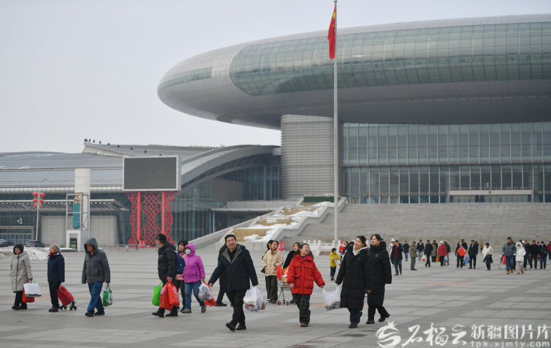 2月8日,购买年货的市民满载而归。 石榴云/新疆日报讯(记者 邹懿摄影报道)“今天买了些糖果和各地的土特产,这里年货种类多,一次就买全了。”2月8日,市民段晓芳说。当日,在新疆国际会展中心,第十八届新疆新春年货博览会(年博会)持续迎客。此次年博会汇聚400余家企业,涵盖近万种年货。现场还推出民俗表演、非遗体验等特色环节,展会全程免门票向市民开放。