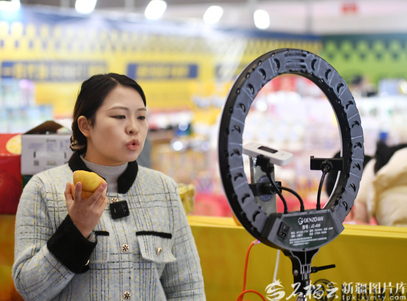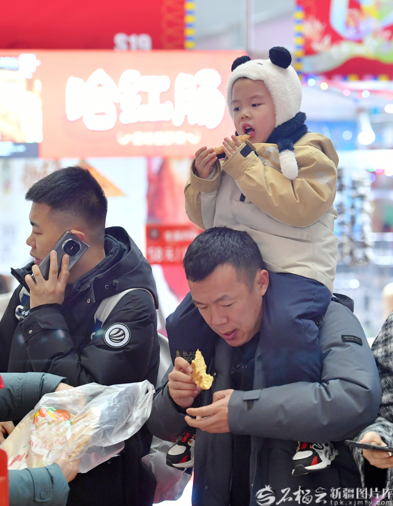 2月8日,市民品尝刚打出来的馕。 本届年博会于1月31日开幕,为期15天,将于2月14日落幕。