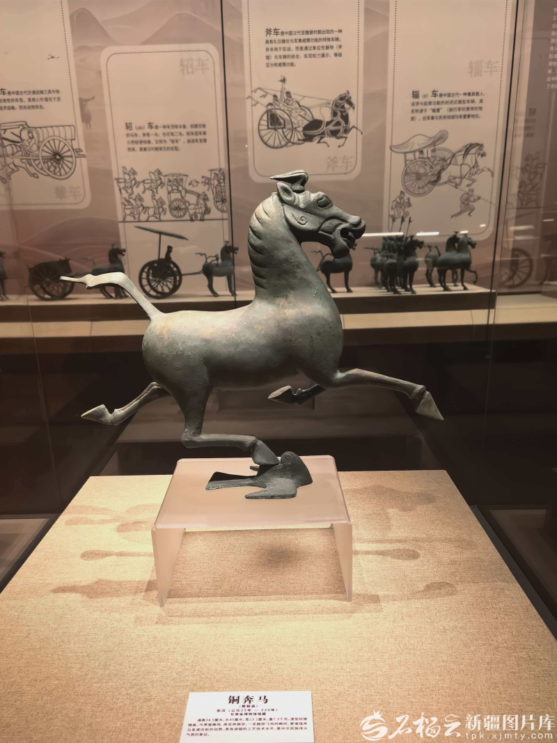 “飞马行疆——丙午马年文物特展”中的铜奔马复制品。乌鲁木齐市博物馆供图