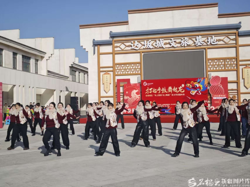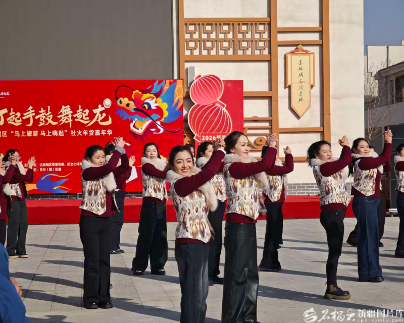 达坂城文旅基地,“达坂城的姑娘社火表演队”进行社火表演活动。石榴云/新疆日报记者 宋海波摄 艳阳下,达坂城文旅基地内张灯结彩,年货摊前人头攒动,欢声笑语此起彼伏。7支社火队伍依次登场,各展风采。随着锣鼓声愈发响亮,“达坂城的姑娘社火表演队”压轴登场。队员们身着艾德莱斯绸纹样的盛装,色彩艳丽,飘逸灵动。 音乐响起,她们踏着欢快的节拍翩然起舞。新疆歌舞的柔美颈肩、街舞的活力节拍、传统社火的喜庆韵律,在三者的融合,尽显青春风采交融之美。现场掌声、欢呼声此起彼伏,不少人举起手机,记录下充满新意的社火表演。 “太精彩了!”人群中不时传出赞叹。孩子们睁大好奇的眼睛,老人们含笑颔首,年轻人纷纷通过镜头分享这份喜庆的年节气氛。