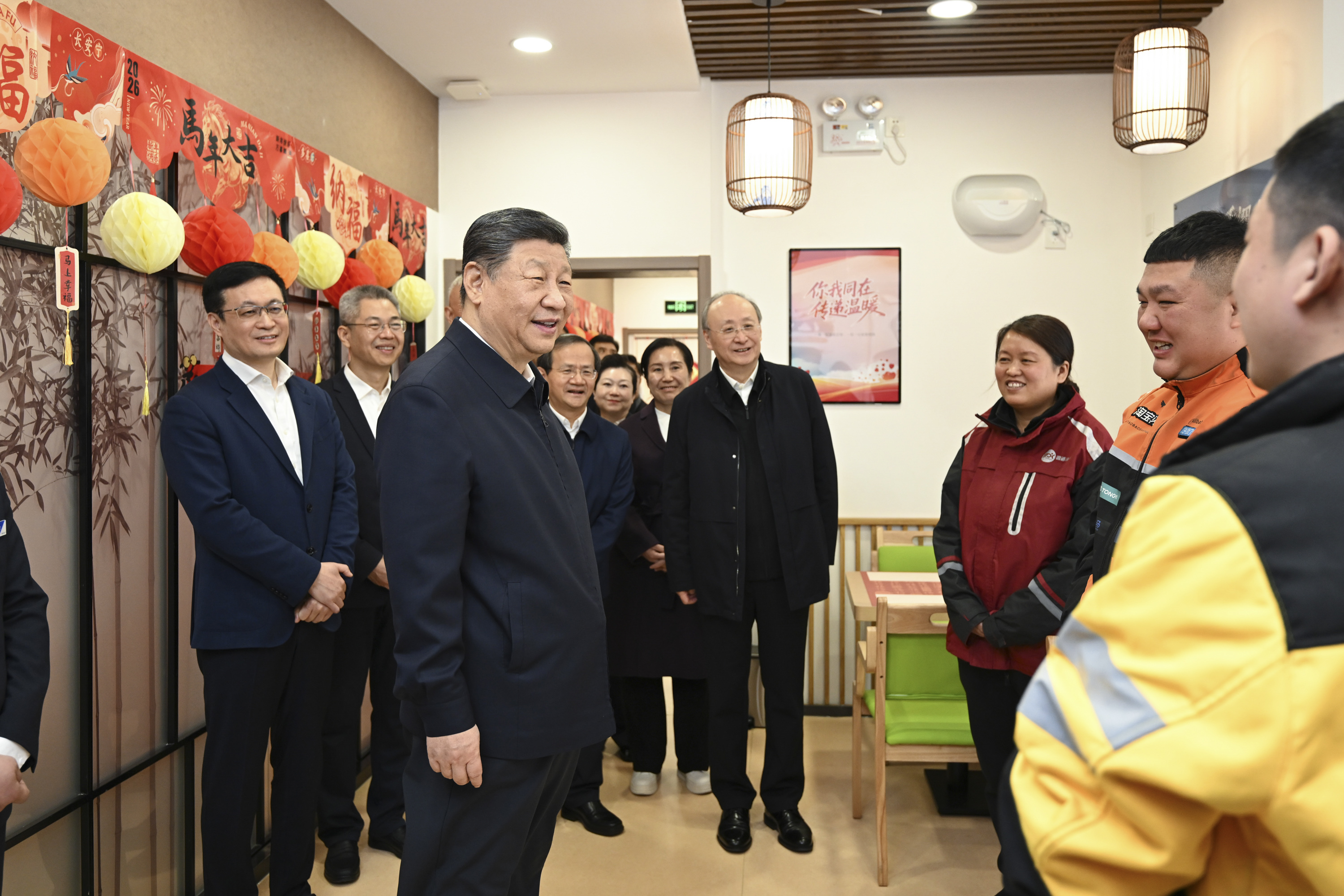 2月10日,习近平总书记在北京市西城区新街口街道父母食堂考察时,见到在这里休息的快递小哥,总书记关切询问他们的工作和生活,为他们付出的辛劳和作出的贡献点赞。