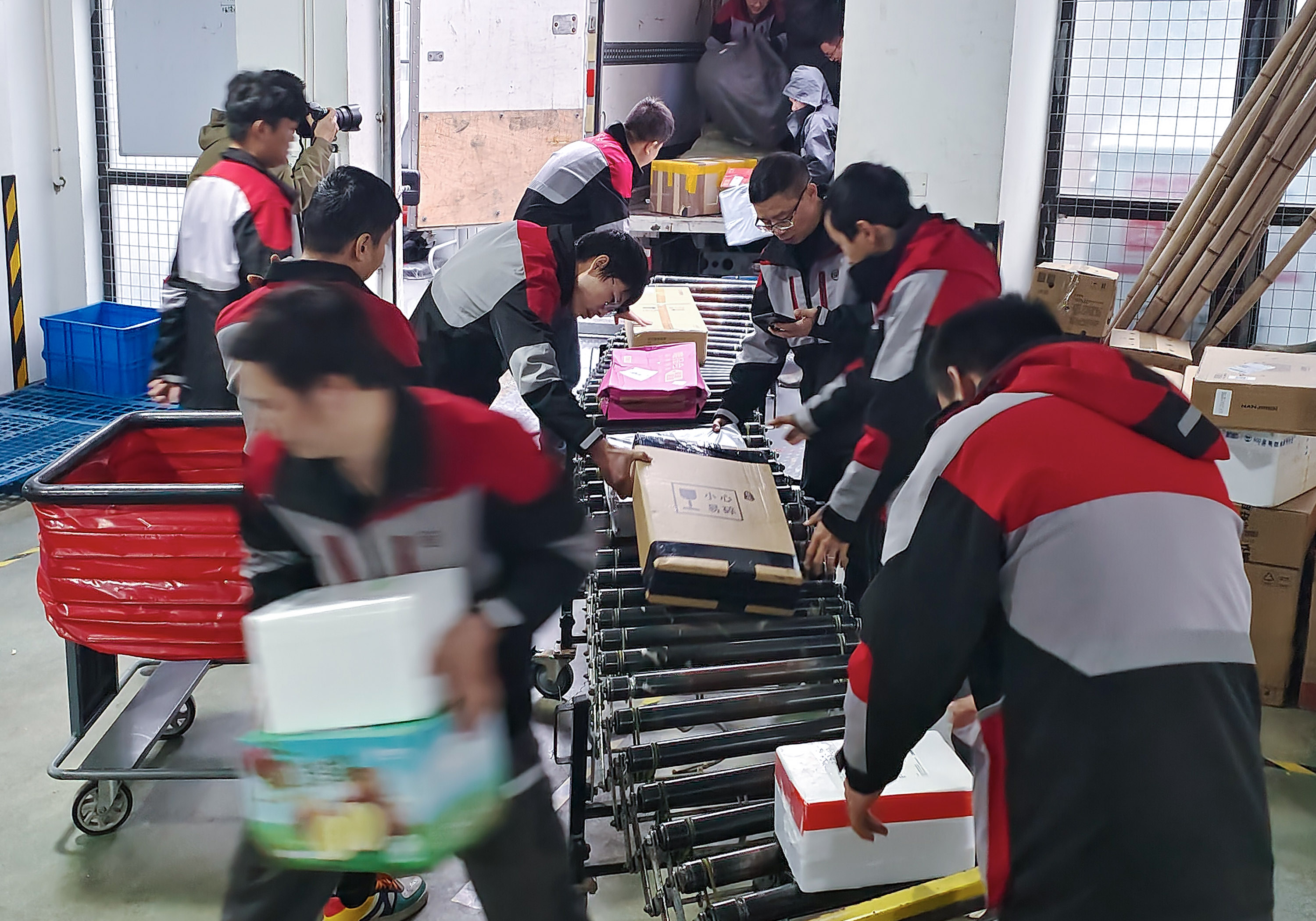 看望仍在工作的快递员