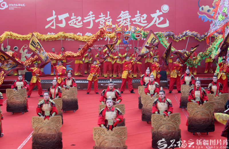 2月11日,新疆国际大巴扎,“打起手鼓舞起龙”第二届乌鲁木齐社火展演活动现场。石榴云/新疆日报记者 李雄心摄