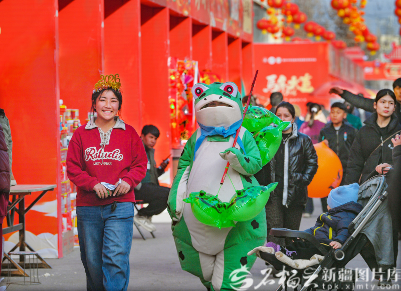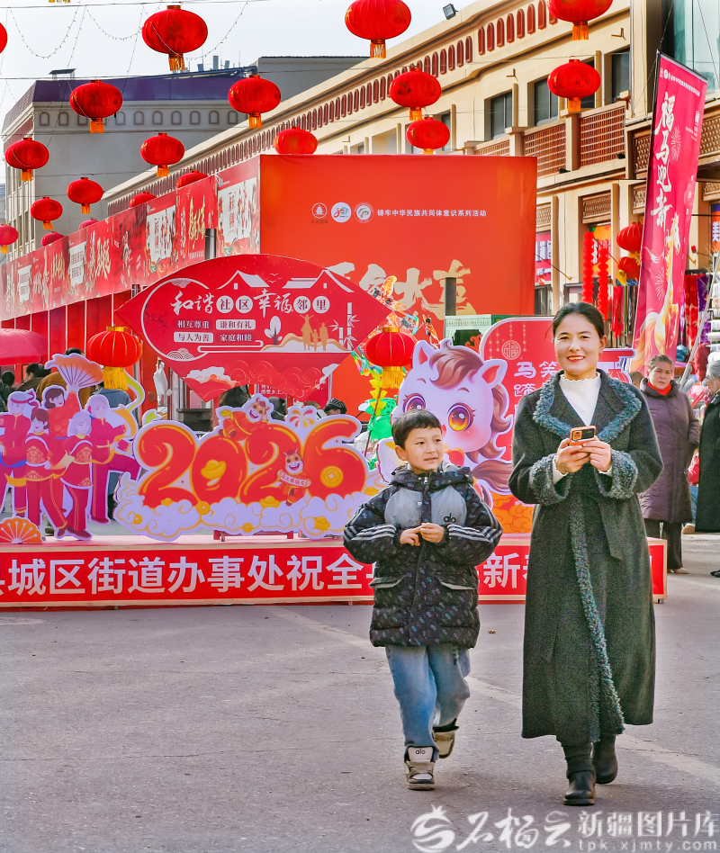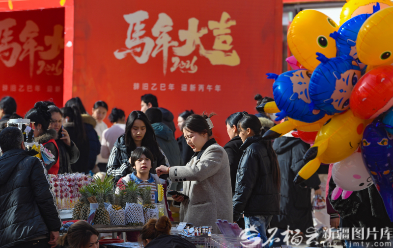 12月12日,在洛浦玉街年货大集一位母亲为孩子选购气球。 大集上,66个展位整齐排布,美食、干果、家电等品类全覆盖,烤全羊、架子肉香气扑鼻,新春饰品琳琅满目。 活动期间,“我带亲戚游洛浦”主题活动同步开展,各族群众共逛大集、共迎新春,彰显团结奋进风貌。“环境又美又整洁,多了个感受家乡新貌和年味的好地方。”居民阿卜来提·阿不都艾尼道出心声。