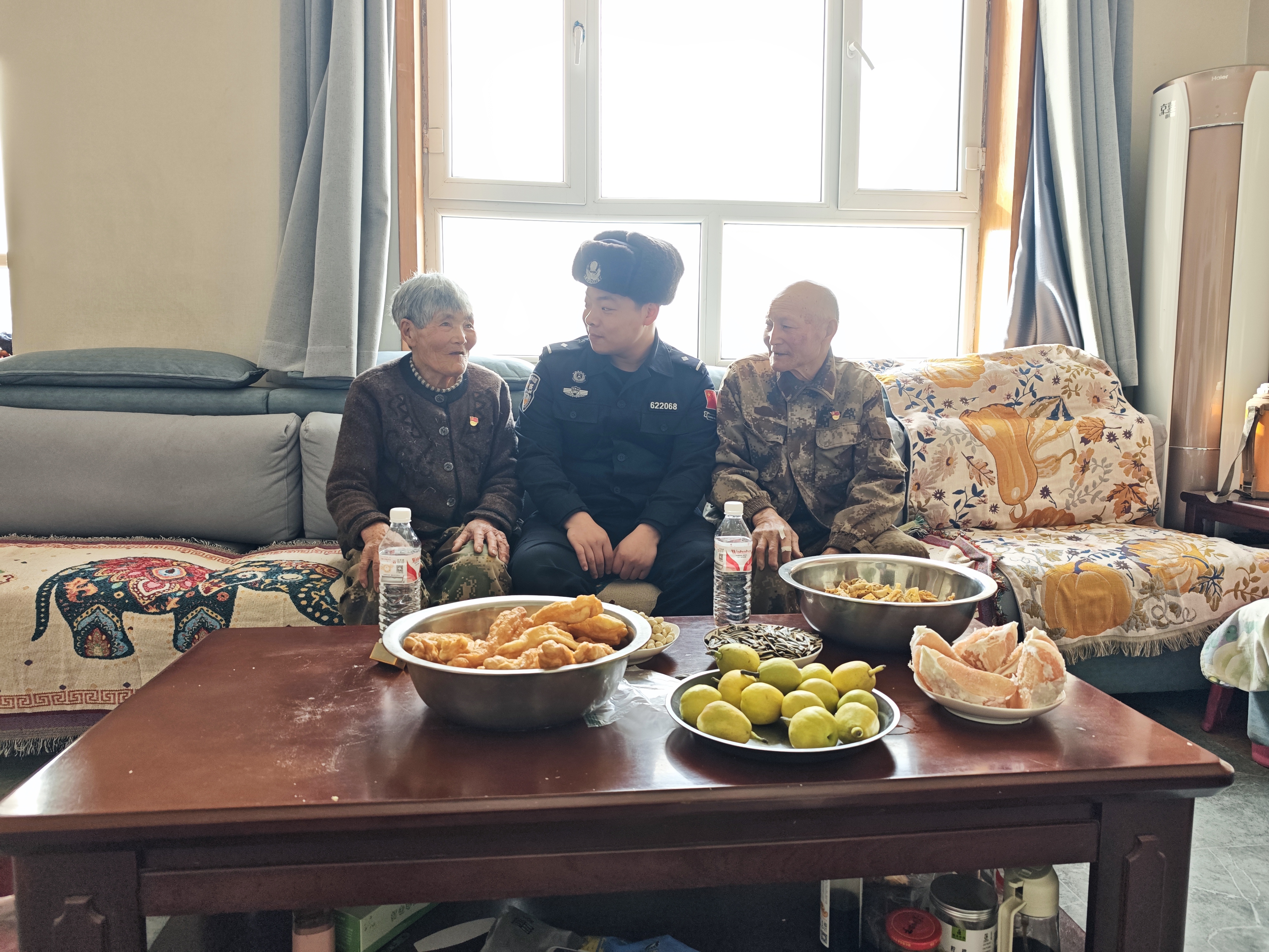 天山网-新疆法治报记者 张蕾 2月9日清晨,裕民县萨尔布拉克草原浸在零下20多摄氏度的严寒里,风雪刮在脸上生疼。记者踏雪来到“七一勋章”获得者、护边楷模魏德友居住的小院时,一面崭新的五星红旗已整齐摆放在桌案上,寒风中,旗杆微微作响。 28岁的新疆出入境边防检查总站塔城边境管理支队吉也克边境派出所四级警长陈云聪搓着冻得发红的双手,与魏德友并肩而立。记者在现场看到,两人稳稳将国旗系上绳,《义勇军进行曲》在空旷的边境线上响起,国旗迎着风雪徐徐升起、迎风舒展。朝阳刺破云层,洒在两人肩头,也照亮了眼前茫茫雪原。 “国是家,边是岗,过年更要把国旗升起来。”魏德友拍了拍陈云聪的胳膊,语气沉稳,“边境无小事,每一步都要踩实,每一眼都要盯紧,把平安守到年根、守到心里。”