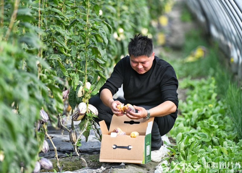 2月18日下午,夏连新在他的大棚里采摘成熟的人参果。