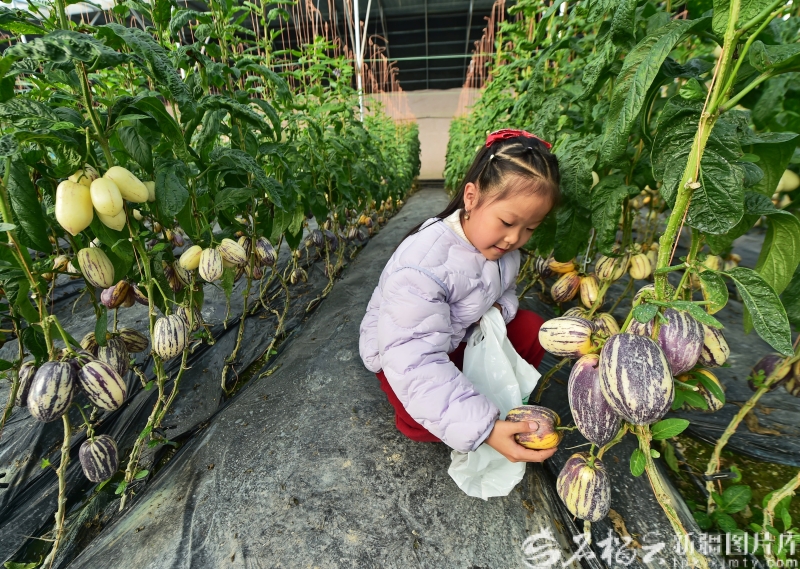 2月18日下午,小朋友在夏连新的大棚里采摘人参果。
