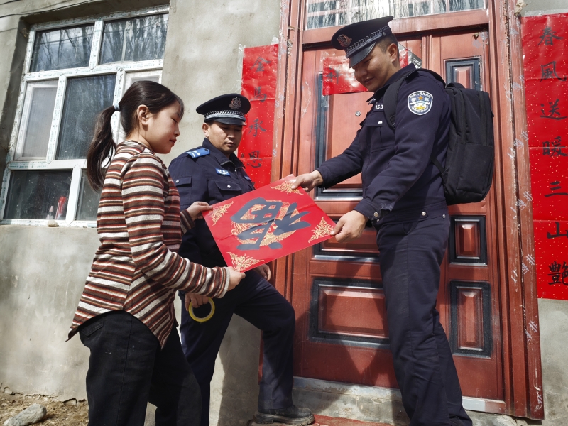 2月11日,乌恰县公安局波斯坦铁列克乡派出所“马背警务服务队”民警帮牧民贴春联和福字。通讯员 黑吉阿且摄 “牧区就是我的家,牧民是我的亲人,只要他们需要,我随叫随到。”吐尔逊买买提说。 乌恰县公安局波斯坦铁列克乡派出所“马背警务服务队”民警扎根一线,在春节来临前,共走访牧民12户,送去春联、福字20幅,代购大米100公斤、面粉60公斤、清油30升及各类果蔬,并同步开展普法宣传、政策讲解和便民服务。