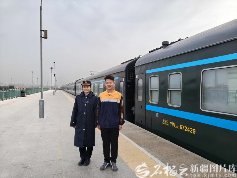 工作间隙,龙宏霄和王娇在库车站站台上合影。石榴云/新疆日报记者 张治立摄 候车厅里,大屏幕显示着每个车次的始发站、终点站、检票时间等信息;站台上,一列列火车来了又走。龙宏霄在内蒙古长大,亲人都在数千公里外的家乡;王娇家在阿克苏市,今年父母回四川老家过年。春节期间,他们都不能回到长辈身边团圆,但内心并不感到孤单。 “库车站,就是我们的家。在这里,我们和同事一起为南来北往的旅客服务,与旅客互道新年祝福,和同事一起吃年夜饭,就像在一个其乐融融的大家庭。”龙宏霄说。 春运期间天气依然寒冷,工作量也加大了不少,但在这对新婚不久的“铁路夫妻”眼里,这段时间,站里站外流淌着温暖和甜蜜:游子们带着满满的行囊、怀着激动的心情从远方归来,或要回远方的家;外来游客或外出旅游者,与同伴的说说笑笑中透着轻松惬意;旅客随身携带的行李中,多为各地特色年货。年的气息在这里聚集流转,形成车站独有的年味。 售票检票、引导旅客上车下车……车站是再也熟悉不过的车站,工作是日复一日的工作,而王娇却感到春节期间处处充满新意:旅客穿着崭新的服装、怀着新一年的期望出行;春运加开客运列车,列车运行图是新的;下班和丈夫一起回家,两人布置的房屋也是新的。 当新婚甜遇到年味甜,激发的是更足的干劲和更热情的服务。“春运期间,多趟列车车次上新:K454次列车调整为T62次列车,由原来的17:44发车更新为18:13发车;K453次列车调整为T61次列车,由原来的7:50发车更新为7:44发车……”面对一名旅客的咨询,王娇熟练地解答。