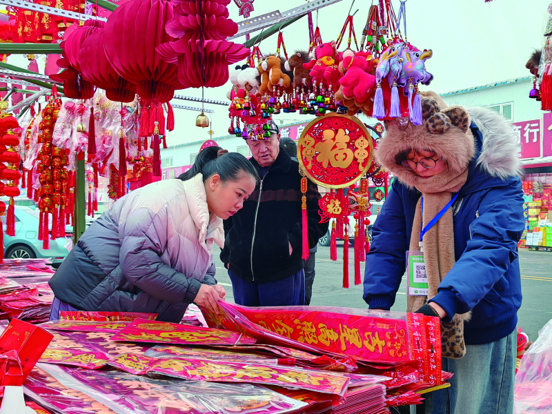 乌鲁木齐新联农副产品综合市场的年货区里,顾客在选购春联。 不远处,年过七旬的邢昌瑞指尖抚过红纸镂空的纹路,粗糙的手掌轻触鲤鱼纹样,喃喃道:“年年有余,这个好。”邢昌瑞专程从乌市米东区来赶集市,说话间,他小心翼翼将窗花收入布袋中,生怕折坏了满纸吉祥。 这仅仅是序曲。在乌鲁木齐市华凌综合市场商贸城,节庆的氛围更为壮观。进入一楼年货专区,就仿佛走进了红色交相辉映的美丽画卷。巨幅春联从高处“倾泻”而下,烫金的“万象更新”“国泰民安”在灯光下流淌着金属的光泽;一副副对联悬挂成行,目之所及,皆是喜庆。灯笼的阵列更是壮观,从古典的绢纱宫灯到可爱的卡通造型灯,从静雅的莲花灯到旋转的走马灯,层层叠叠,形成一片温暖的光之丛林。叫卖声、询价声、欢笑声此起彼伏,汇成鲜活的年节序曲。店主董彩云整理完货品,看了看熙攘往来的人群说,“现在,各族群众都来采购年货。大家买的是春联窗花,更是那份‘年’的心意。” 乌鲁木齐市天山百货大楼年货专区,顾客络绎不绝;汇嘉时代门口,红灯笼成串高悬;好家乡超市内,工作人员并肩挂灯笼、贴福字,指尖相触间,皆是团圆的温情。 消费活力辉映斑斓年货 “为满足各族群众对年货的需求,我们特意腾出地方设了春联、窗花等文化专柜,目前每天日均营业额比去年同期明显增多。”天山百货大楼友好享生活超市洗化组负责人杨金萍说,商务部等9单位近日联合印发了《2026“乐购新春”春节特别活动方案》,围绕春节推出系列促消费活动以来,商超消费活力明显提升,消费者对年货的购买需求量很大。 走进昌吉市隆源超市,火红的福字、鲜艳的灯笼将卖场装点得喜气洋洋,春联、窗花、灯笼、马年小抱枕等年货摆满了货架,前来选购的市民络绎不绝。超市门店经理侯新军说,超市在一个月前就开始备年货。 “骏马奔腾迎盛世 春风浩荡展宏图”“门迎骏马千祥至 户纳春风百福来”……乌鲁木齐市华凌综合市场商贸城1楼F区,阿依加玛丽·苏拉依曼麻溜地取出几个喜庆的福字,给一对维吾尔族青年夫妇解释“福”“祥云”的寓意。阿依加玛丽是一位柯尔克孜族的80后,经营年货已经5个年头了。“现在各民族顾客越来越多,随着年节临近,生意也在持续升温。”阿依加玛丽说,有些顾客或许不能深刻理解每副春联的内涵,但大家对安康顺遂的向往是相通的。 乌市中山路与红旗路交会处的年货摊点,摊主李秀英的货架上,传统牡丹、喜鹊与融合了葡萄、石榴、巴旦木图案的剪纸窗花交相辉映。“这幅石榴图最抢手,每天都要补好几次货。” 无论是各大农贸市场,还是人气满满的商超,春联、窗花、灯笼等年俗商品销量节节攀升,点燃了冬日消费市场。 年货新意引领时代风尚 “手写的春联真有风骨,比印刷出来的酷多了!”在乌鲁木齐汇嘉时代中山路店文创区,几个年轻人正围着书法摊讨论。百货组负责人于宁宁忙得不停:“年轻人不光买,还自己编吉祥话。” 在走访中记者发现,越来越多的年轻人走进市集、追寻年味,成为年货采购的生力军。他们或驻足研读对联意蕴,或拍照分享窗花纹样,不再满足于线上购物的便捷,更偏爱市集里的烟火气、亲手挑选的仪式感。 年俗商品在材质和设计上不断创新。春联、窗花等不再局限于红纸金字,棉布、丝绸等材质开始流行,部分产品还增添了变色、播放音乐等功能。窗花设计也融合了艾德莱斯绸纹等特色纹样,广受欢迎。 在乌市月明楼市场年货区,巴音其其格特意挑选了一幅融合马纹与传统云纹的窗花。摊主张华洋介绍,新材质、新设计、新纹样的加入,让春联、窗花、灯笼更贴合当下生活,也让中华文化符号在创新中更具吸引力、感染力。 从市场到商超的节庆氛围,从传统红纸到创新材质,从长辈的仔细选购到年轻人的热情参与,笔墨铺展,红纸生辉,人流与笑语在买卖之间涌动,一幅幅热气腾腾的年节画卷扑面而来:卖方麻利地取货、打包、算账,顾客则精挑细选、询价议价,举手投足间满是对新年的期盼,新年,就这样喜盈盈地到来了。 责任编辑:余若琪