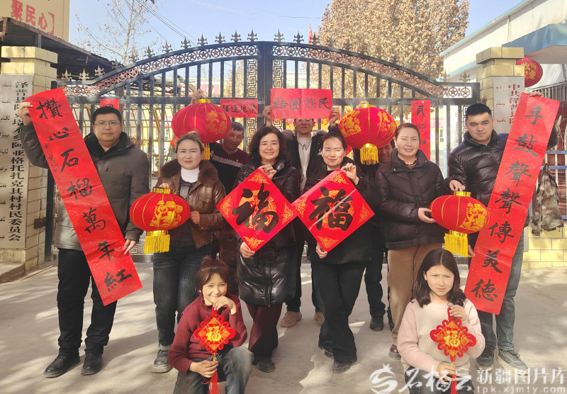 泽普县阿克塔木乡阿亚格托扎克其村村民与驻村工作队队员、村干部合影留念,共庆新春。努尔比耶木·吐尔孙摄