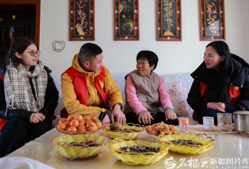 新源县融媒体中心驻那拉提镇喀拉苏村工作队队员和村干部春节期间走访当地群众。张文庭摄