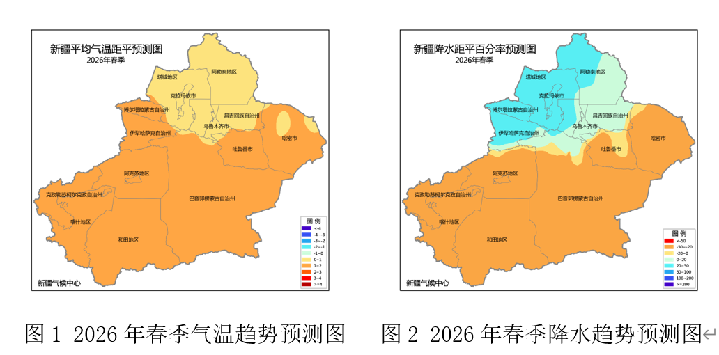 天山网-新疆日报讯(记者谢慧变报道)3月1日,新疆气候中心发布2026年春季气候趋势预测,预计今年春季(3月—5月),全疆大部地区气温较常年偏高,降水呈现“北多南少”的分布格局。新疆气候中心提示:公众及各相关部门需重点关注融雪型洪水、局地强降水、风沙天气及气象干旱等可能发生的气象灾害。