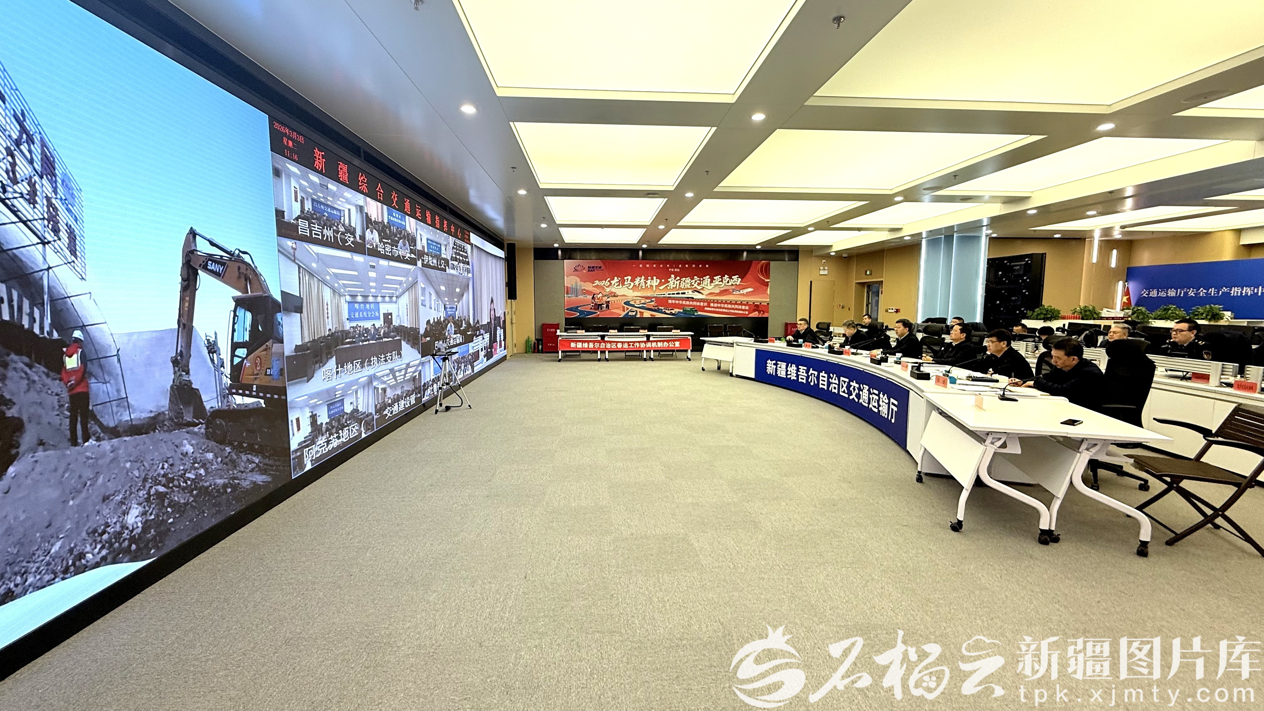 3月3日,自治区交通运输厅召开2026年交通运输领域复工复产暨新开工项目视频动员会。哈得江·哈斯木摄 自治区交通运输厅建设管理处副处长王飞介绍,自治区全力推进交通建设项目全面复工复产,确保实现一季度“开门红”。截至目前,全区44个国省干线续建重点项目已复工29个,复工率65.9%,返岗人员超3800人。 其中,G219昭苏至温宿,G219温泉至霍尔果斯,G577精河至伊宁3个重点项目春节期间未停工或仅做短暂休整,G3033奎独库高速公路项目第二批土建施工已挂网招标。其余项目正在抓紧组织人员返岗,设备进场,进度符合预期。预计到3月底,除S229线托斯特至黑山头等3个位于高寒高海拔等特殊区域的项目外,其余41个项目将全面实现复工复产,复工率达93.2%,人员返岗率突破95%。 同时,G682克拉玛依至阿拉山口、G679线乌拉斯台至奇台项目争取早日开工建设,储备项目前期工作有序展开,工可、初步设计、施工图设计梯次推进。农村公路、枢纽场站、地方铁路等项目同步复工备建。