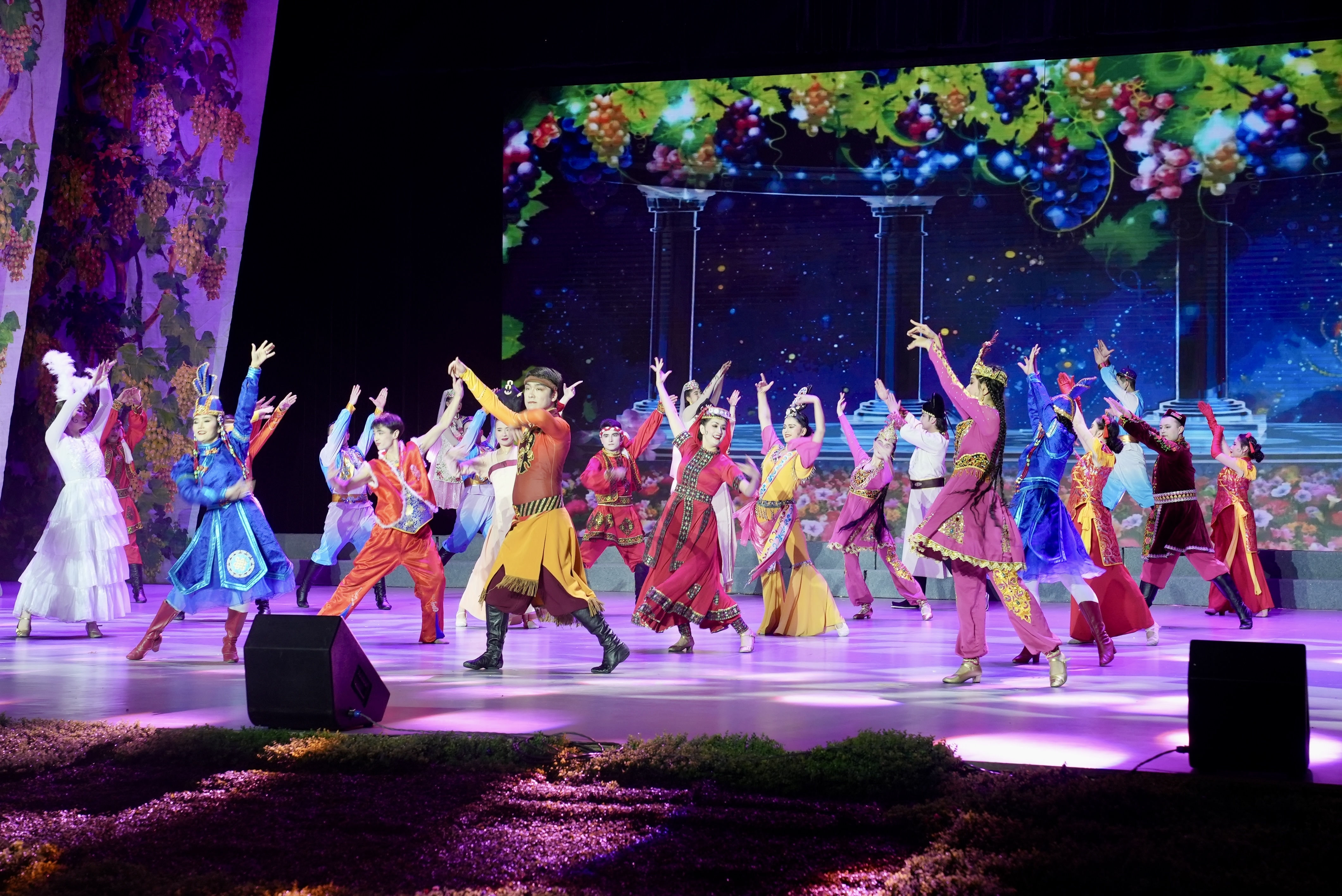 2月28日晚,2026年彩票公益金支持文艺精品全疆巡演项目——大型音舞诗《吐鲁番的葡萄会唱歌》在博尔塔拉蒙古自治州全民健身中心、文化艺术中心上演,为当地观众献上一场丝路风情与文化盛宴。 该剧由吐鲁番歌舞剧团、吐鲁番火洲演艺文化有限公司联合创排,以葡萄种植文化为主线,通过“葡萄奶奶”与孙女的对话,串联丝绸之路历史文脉与新时代发展图景。剧目取材于湖南援疆专家与吐鲁番本地专家的感人事迹,展现各族儿女团结奋斗的动人场景。