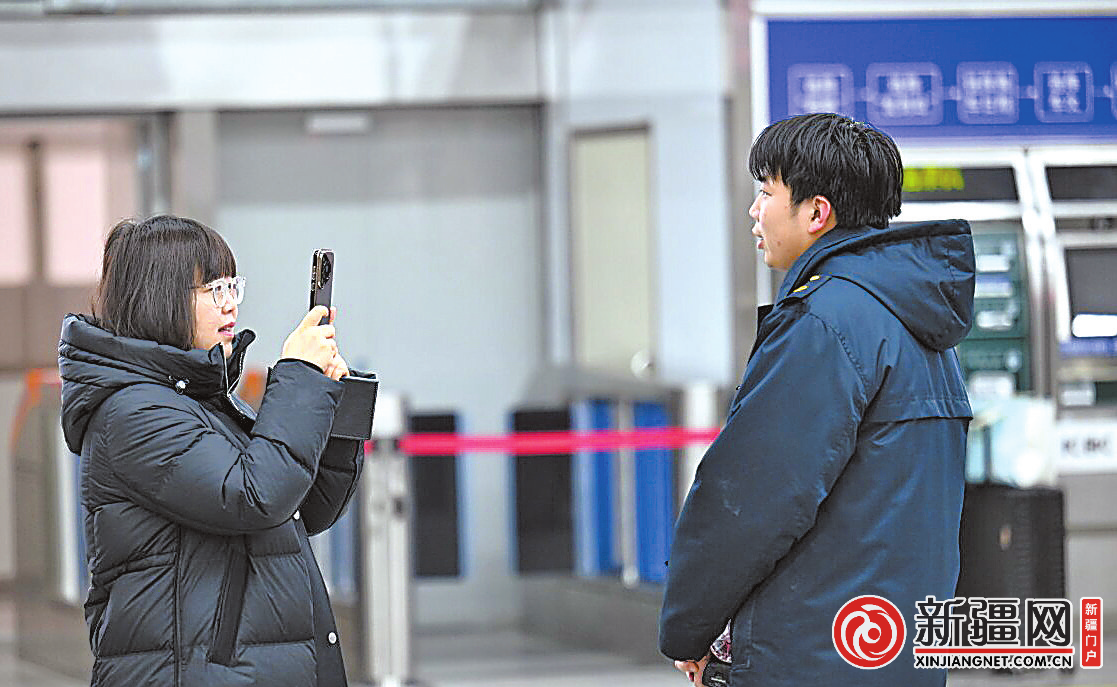 在乌鲁木齐南站,乌鲁木齐晚报记者王媛媛在采访客运员。