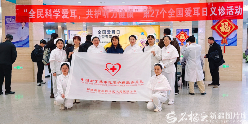 近日,自治区人民医院南丁格尔志愿护理服务队开展全国爱耳日志愿服务。图/自治区人民医院提供