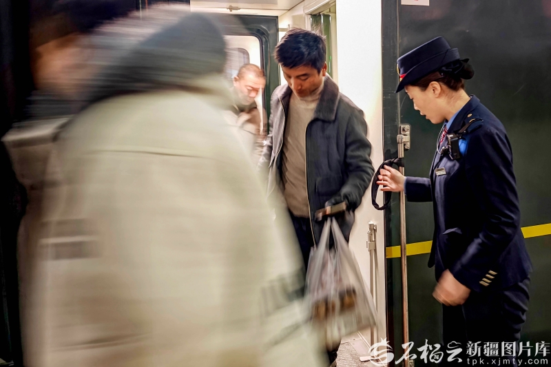 3月2日,石家庄站,列车员守护旅客下车。 3月2日22时,K4126次列车稳稳停靠北京西站,本次值乘任务圆满完成。但乘务组并未停歇,立刻投入返程K4125次的准备工作。3月5日,这趟临时列车历经万里奔袭,伴着朝霞回到乌鲁木齐站,为本趟值乘画上温暖句号。 春运虽已收尾,但铁路人的使命永不停歇。铁轨延伸处,是归途的诗行;灯火阑珊时,是坚守的身影。他们不是聚光灯下的英雄,却是平凡岗位上最可敬的奉献者,用脚步丈量责任,用微笑传递温暖。在这条通往春天的路上,每一列飞驰的列车,每一个坚守的身影,都是流动中国最生动的风景。 【相关新闻】 图片故事丨百小时坚守,两车长“无缝衔接”护航春运 一趟“临客”的春运温度 责任编辑:魏燕慧