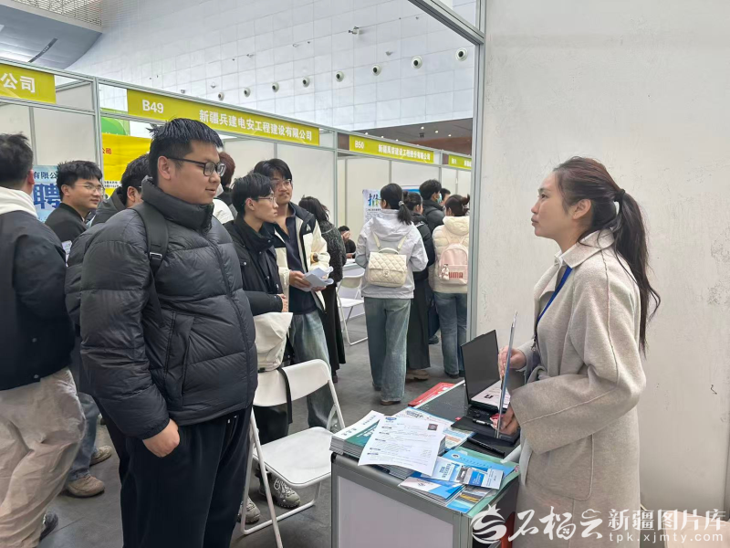 在一家智能装备企业的展位前,新疆大学自动化专业应届毕业生杜庆贝扬了扬手中的简历,自信地回复。