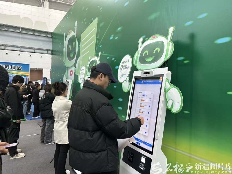 3月13日,在自治区2026年高校毕业生春季招聘大会暨全国城市联合招聘高校毕业生专场活动现场,求职者运用AI求职一体机。石榴云/新疆日报记者 赵春华摄