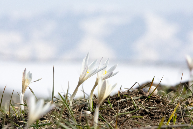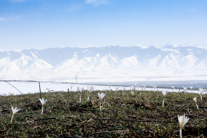 三月天山,残雪未消。在新源县吐尔根乡的山地向阳坡上,白番红花顶冰破土,次第绽放,以坚韧身姿奏响春日序曲,成为天山北麓最早的报春使者。 初春时节,气温仍在零下,白番红花冲破冻土与残雪,悄然铺满山野。植株娇小玲珑,乳白色花瓣簇拥金黄花蕊,在寒风中亭亭玉立,与皑皑雪峰、苍茫山野相映成趣,绘就冰与花共生的生态画卷。而随着花开,蜜蜂们也忙碌了起来。 作为伊犁河谷早春标志性花卉,白番红花花期近半月,是大自然复苏的鲜明信号。随着盛花期到来,新源春日画卷将正式铺展,杏花、天山红花、雪山报春等将接续绽放,绘就新源绵延数月的花海盛景,尽显天山生态之美与生机活力。