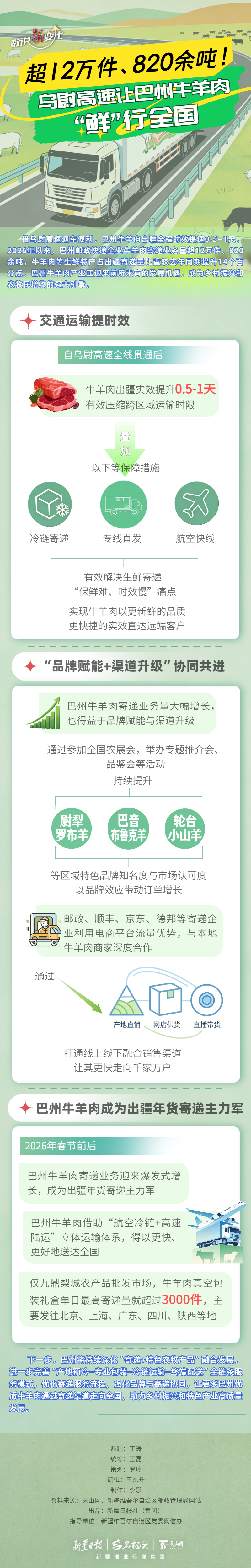 2026年以来,巴州邮政快递企业累计寄递牛羊肉超12万件,总重820余吨。牛羊肉等生鲜特产占出疆寄递量比重较去年同期提升14个百分点。巴州牛羊肉寄递业务为何呈现爆发式增长?这一趋势对推动乡村振兴和促进农牧民增收带来哪些积极影响?本期《数说“新”变化》为您解析。
