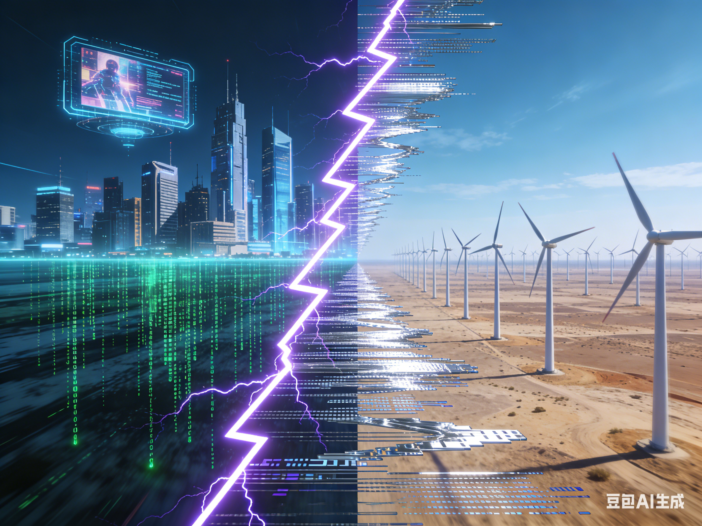 这里不是科幻片的片场,是新疆的风电场。每一片叶片的转动,都在生成一个“绿色Token”,输送到几千公里外的数据中心。