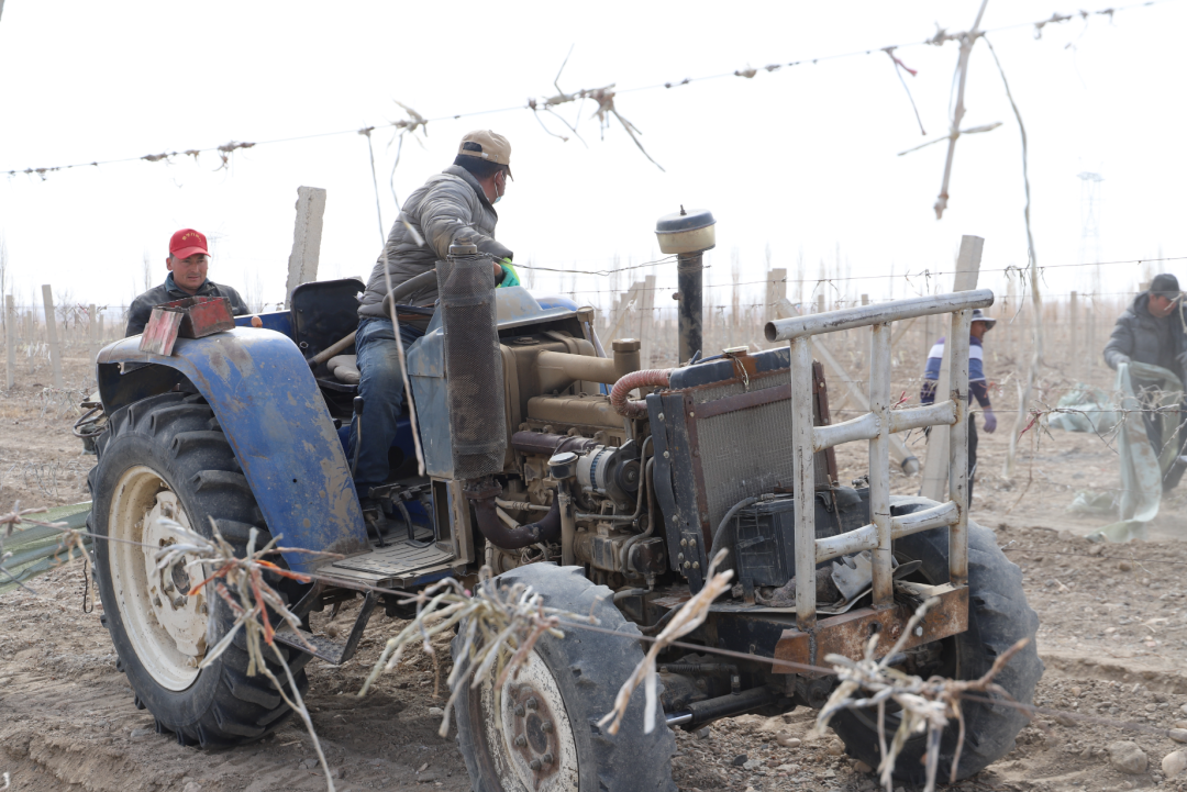 和硕县冠颐酒庄葡萄种植基地负责人常国虎说:“根据现在气候特点,咱们冠颐酒庄的葡萄出土工作从今天开始,现在冠颐酒庄种有酿酒葡萄1000亩,我们计划利用十天时间完成出土工作,出土工作它有两个关键的节点,不能太早也不能太晚,如果掌握不好这个时机,就会造成产量的损失。所以恰当的把握出土时机是种植技术很重要的一项工作,通过我们的观察,我认为这个阶段出土是比较适宜的。葡萄出土工作完成以后,我们要进行葡萄上架、葡萄滴灌的铺设、第一次催芽水灌溉、施肥等工作,后期我们将严格按照酿酒葡萄操作规程完成酿酒葡萄的作业管理,为2026年生产出好的葡萄原料为酒庄提供好高品质的葡萄打下坚实的基础。”