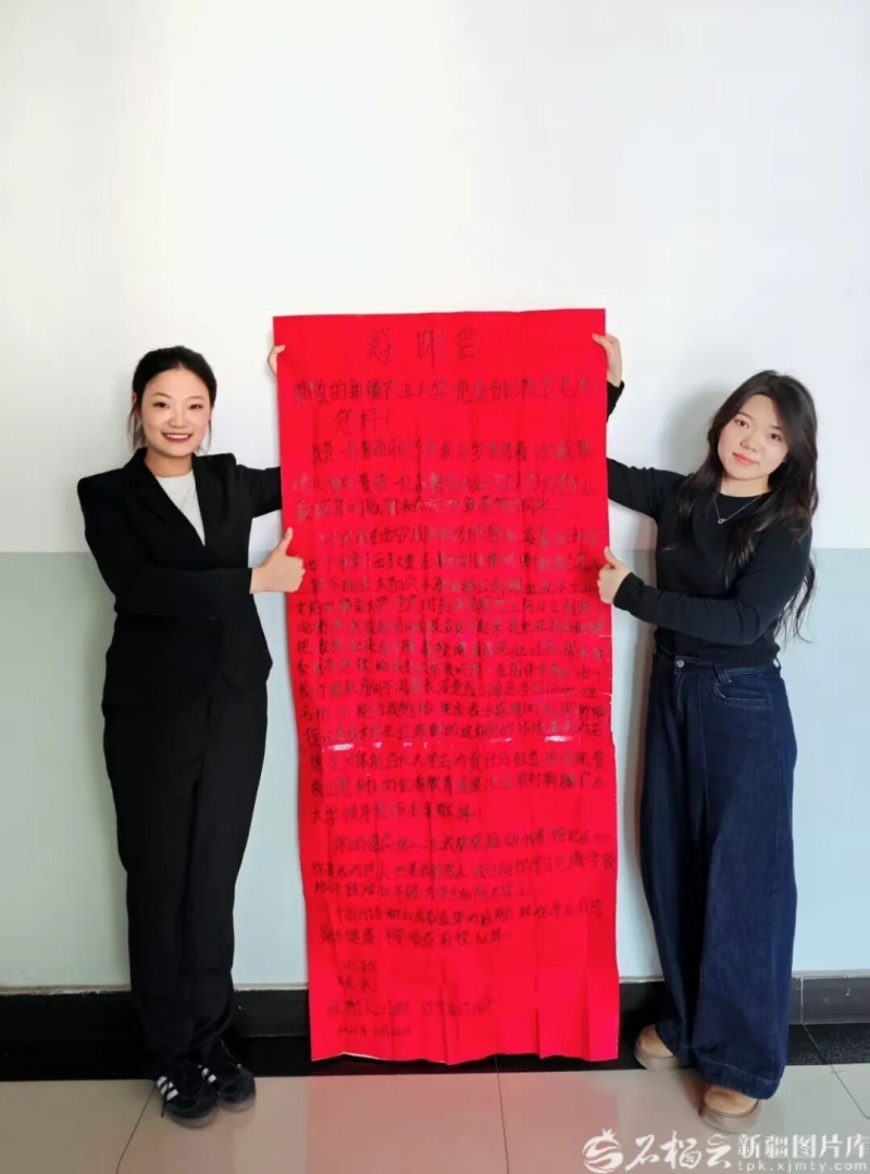 石榴云/新疆日报记者 赵西娅 通讯员 赵敏 “如果不是这位同学,我都不敢想那天晚上会怎样……” 4月的新疆农业大学校园,春意渐浓。一封跨越千里、从辽宁辽阳寄来的特殊信件,让校园里的温暖悄然升腾。 信封里,两张一开的红纸被精心拼贴成锦旗模样。写信人是一位74岁的老人,名叫王敏。她用质朴的文字,讲述了两个多月前一段让她终生难忘的温暖相遇。