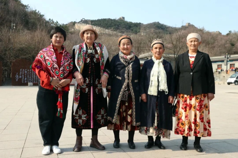 图为麦热耶木·排尔曼(中间)和其他护边党员在北京万里长城前的合影。记者 艾力艾斯卡尔·努尔艾孜 摄 麦热耶木·排尔曼站在他身后,眼眶也红了,目光紧紧追随着那抹红色。 “我在边境线上守了四十多年,每次巡边都会抬头看看远方,想着北京就在那个方向。今天,我终于站在了这里。”升旗仪式结束后,图兰巴依·库尔古丽站在那里久久没有动,声音哽咽道。 那一刻,他们守护的边境线与首都的脉搏,完成了最深情的共振。这些来自帕米尔高原的护边老党员,用一生的忠诚守护着同一片国土,他们的身影,正是中华民族大家庭中每一个成员心向祖国、守望家园的生动缩影。 登上八达岭长城时,阿卜都加力力·阿不都卡德尔深吸一口气后,开始背诵《七律·长征》:“红军不怕远征难,万水千山只等闲……”声音洪亮,字字铿锵。周围的游客停下脚步,静静听着。背完最后一句,阿卜都加力力·阿不都卡德尔眼眶泛红:“护边和当年红军长征一样,都是为国家,都是值得的。” 长城上的风轻轻吹过。93岁的图尔干巴依·库齐站在一旁,默默点头,嘴里一直念叨着:“值了,值了。” 对于这些护边员来说,长城有着特殊的意义——他们在帕米尔高原上守了一辈子,筑起的是“移动的长城”。如今,他们终于亲临长城,也终于明白,自己守护的,正是这万里河山的一部分。从帕米尔高原到万里长城,从边境线到首都,无论身在何处,他们守护的是同一个家,名字叫中国。 从帕米尔到北京,跨越的是千山万水,不变的是对祖国的一片赤诚。这些老同志们用一生践行着“一生只做一件事,我为祖国守边疆”的铮铮誓言。他们守护的,从来不只是脚下的边境线,更是心中那份对祖国、对中华民族大家庭的深深眷恋。