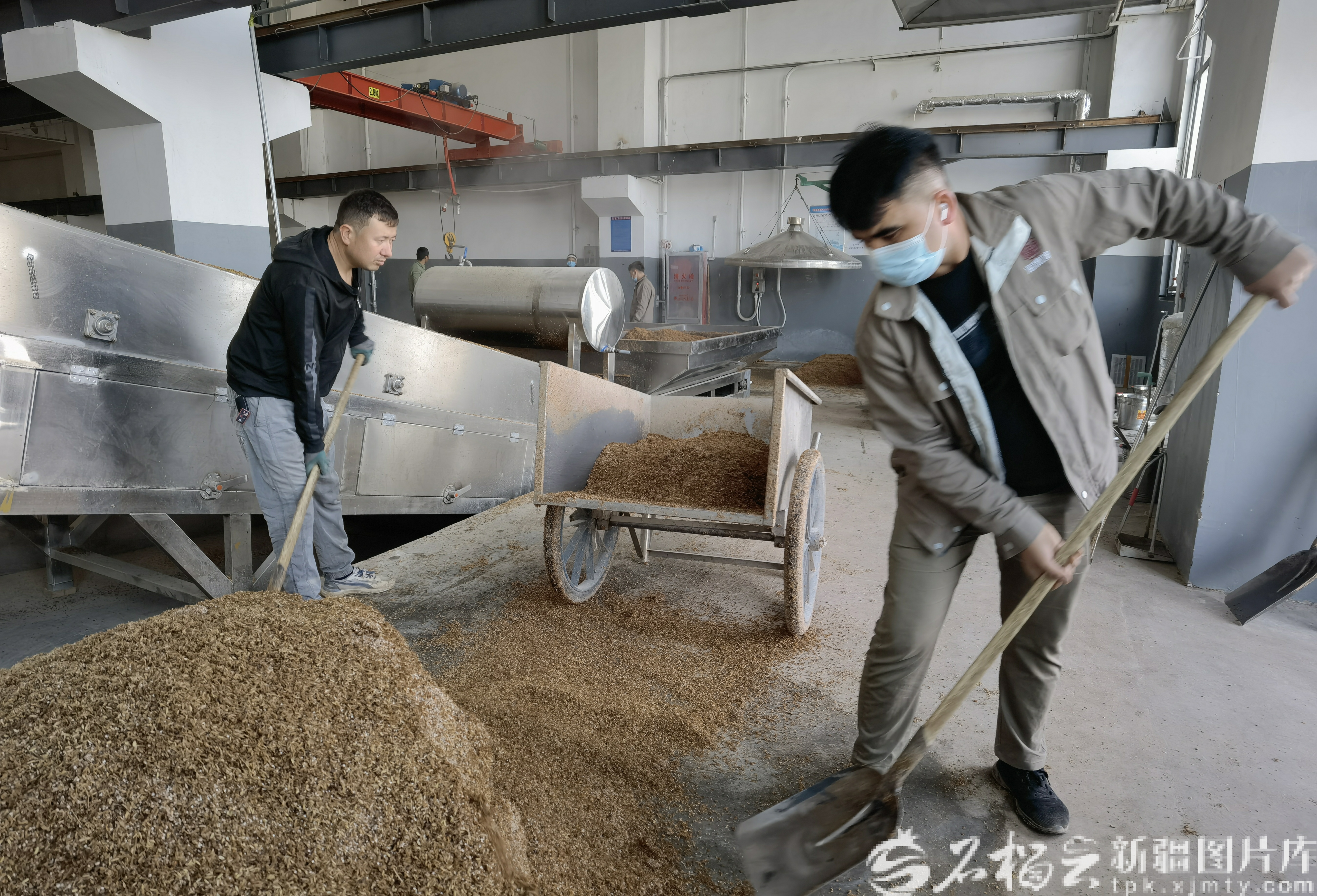 2025年10月25日,在新疆海德坤农业科技有限责任公司酿酒车间,工人在处理酒渣。天山网-新疆日报记者 陈疆林摄