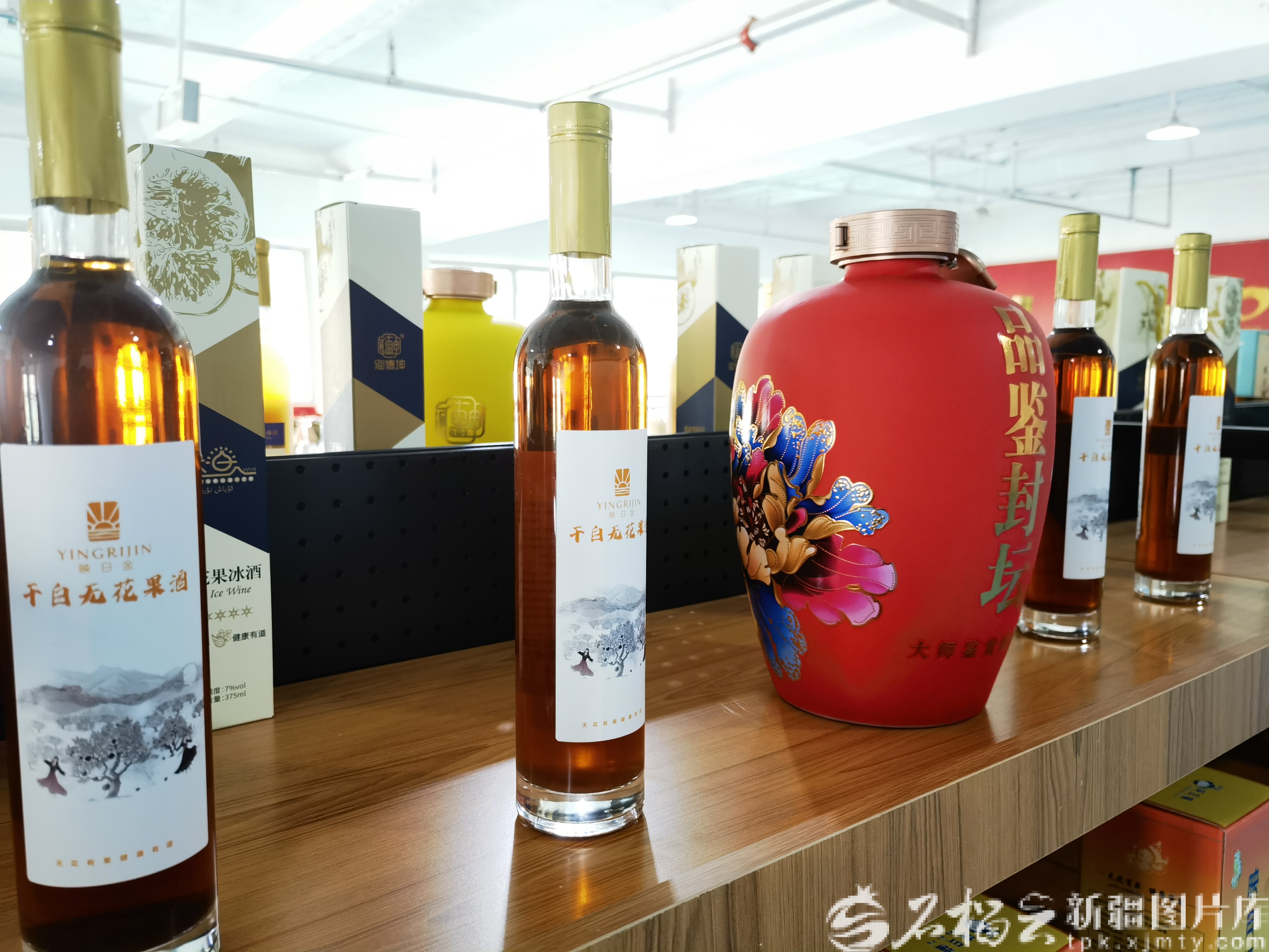 在新疆海德坤农业科技有限责任公司产品展示区,无花果酒整齐陈列。天山网-新疆日报记者 陈疆林‍摄