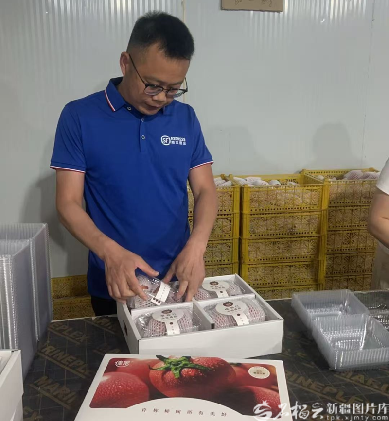 2026年4月9日,快递小哥朱向阳正打包水果番茄。徐强摄 “喀什红”凭借充足日照、巨大的昼夜温差与冰川融水灌溉,又在浙江大学蔬菜研究所先进栽培技术加持下,孕育出沙瓤多汁、酸甜浓郁的独特风味。而要让这份好品质的疆果快速出疆,更离不开高效便捷的物流支撑。 “现在,水果番茄日均发运量已稳定在1000余单,主要发往北京、上海、广东、浙江、江苏等地。”新疆顺丰速运有限公司喀什片区负责人刘俊杰介绍,针对“喀什红”水果番茄的特点,公司量身定制了全年保鲜运输方案:夏季采用“泡沫板+带透气孔礼盒”防高温变质;冬季采用“泡沫板+泡沫箱+保温棉”防冻坏。保障红彤彤的番茄从喀什田间地头航空发运至全国消费者手中,72小时内要可达。 数据显示,2024年“喀什红”全年发运超35万件、700余吨,带动当地农业产值1400余万元。2026年早春销售季,其销量持续火爆,已发运400余吨,带动农业产值超1000万元,且发运量仍在稳步提升。预计整个发运季将持续至5月,总产量和订单量将进一步攀升。 喀什地区邮政管理局党组书记、局长王晓虎表示,从“运得出”到“运得鲜”,再到“运得值”,一颗颗“喀什红”,折射出新疆快递服务现代农业的丰硕成果。该局将以此为推广样板,引导快递企业为本地农特产品上行提供专业化供应链服务,让更多新疆特色农产品借现代物流走向全国,为乡村振兴注入新活力。 责任编辑:刘新草