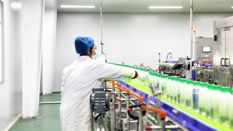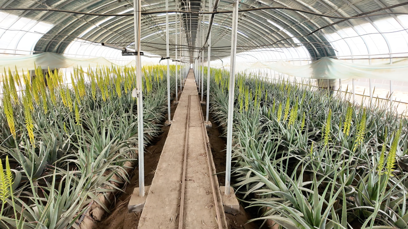 大棚里种植芦荟。 打通芦荟种植供货链后,企业自主研发出芦荟青汁、芦荟植物水、芦荟冻干粉、芦荟发酵饮等系列特色产品。新鲜芦荟从种植基地直达生产车间,依托智能化生产设备高效开展深加工,实现了从原料种植到产品生产的完整产业链闭环,打造出独具南疆特色的芦荟产业。 在企业芦荟精深加工车间,大型自动化生产线高速运转,新鲜芦荟历经清洗、破碎、过滤、杀菌等多道工序,快速完成装瓶、包装等全流程。当天采摘的新鲜芦荟,仅需不到两小时、经过4道核心工序,就能加工成口感清爽、营养丰富的芦荟饮品。目前企业5个生产车间同步作业,每分钟可生产芦荟饮品200瓶,日产量突破10万瓶。