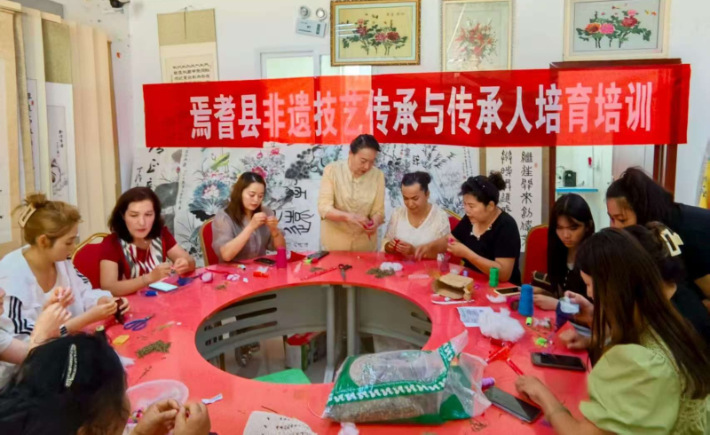 马兰梅(左四)在社区开展非遗刺绣教学。受访者供图