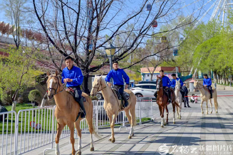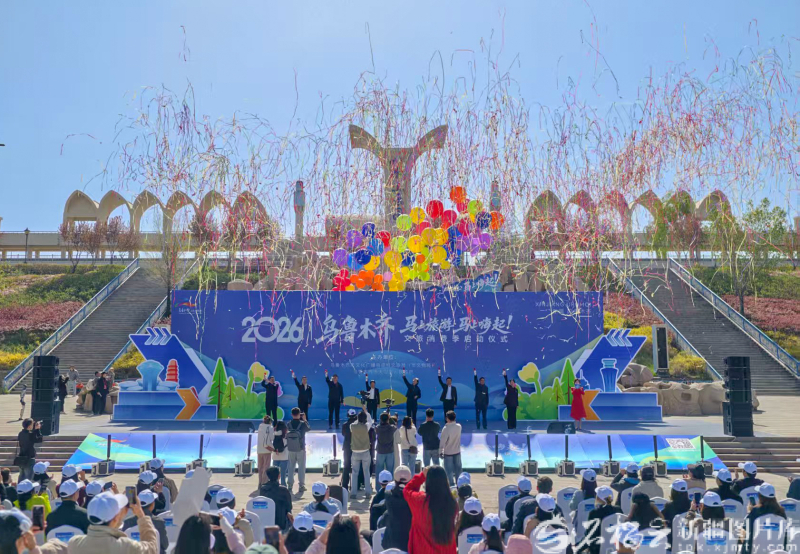 4月19日,乌鲁木齐文旅消费季启动仪式现场。 石榴云/新疆日报讯(记者 周鹏摄影报道)4月19日,以“马上旅游 马上嗨起”为主题的乌鲁木齐文旅消费季启动仪式在乌鲁木齐水上乐园主广场举行。活动汇聚文旅资源,释放惠民红利,丰富游玩体验,全方位展示乌鲁木齐春日文旅魅力,点燃市民游客出游热情,助力文旅消费市场持续升温。