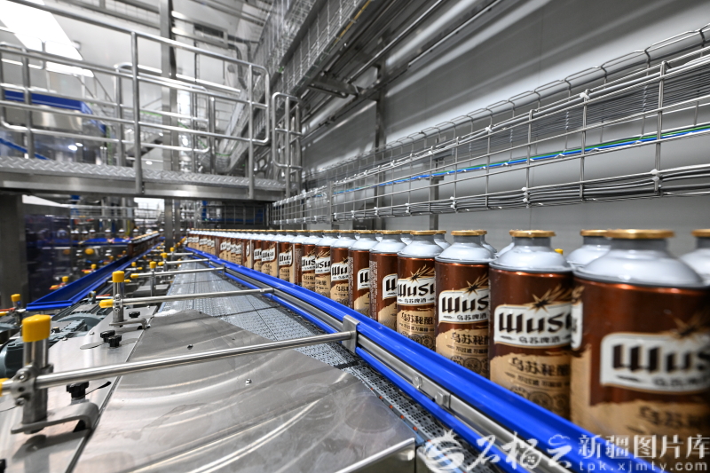 新疆乌苏啤酒有限责任公司生产车间1L罐线生产线。企业供图