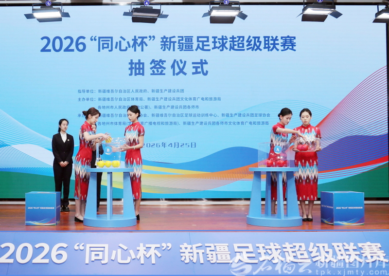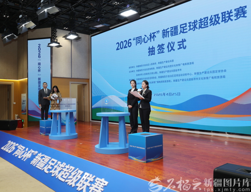 石榴云/新疆日报讯(记者 李雄心摄影报道)4月25日,2026“同心杯”新疆足球超级联赛抽签仪式在乌鲁木齐举行。 本届联赛共组建14支参赛代表队,按地域划分南北两大赛区,每个赛区各7支队伍同场竞技。联赛赛期贯穿5月至8月,将依次开展常规赛、淘汰赛共计56场精彩对决,倾力打造一场跨越天山南北的全民足球盛宴。