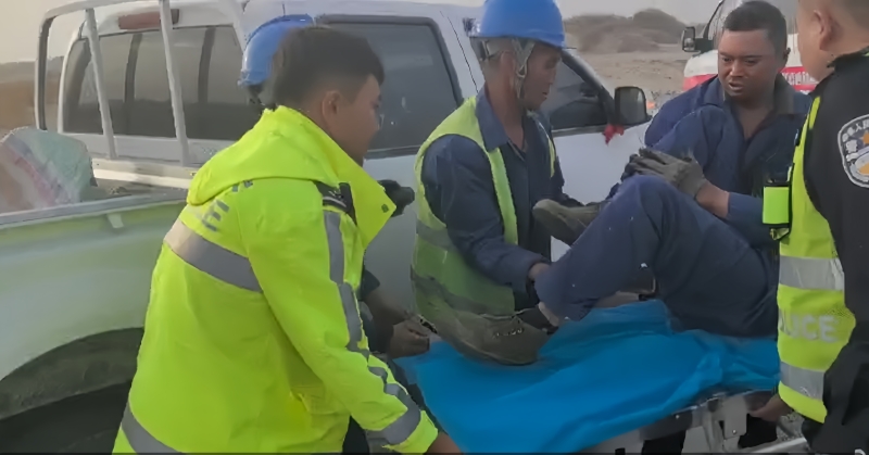 若羌县公安局交管大队执勤民警在巡逻途中,发现一名男子瘫坐路边,右腿膝盖受伤,伤口较深,裤腿被鲜血浸透,神情痛苦。