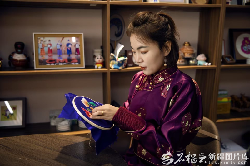 艾尔代尼才次克身穿自己做的蒙古族服饰在做刺绣。本人供图 从两间简陋的村工作室起步,到如今,年销售额突破150万元,艾尔代尼才次克用了13年时间,让一项濒临失传的古老技艺重新焕发生机。 艾尔代尼才次克与刺绣的缘分,始于牧区的童年时光。她的爷爷是个木匠,奶奶会做蒙古族服饰并擅长刺绣技艺,她在耳濡目染中接触了这门手艺。针怎么捏、线怎么走、驼绒怎么捻,都是那时候看会的。 而真正让艾尔代尼才次克下定决心的,是在重庆读大学时,逛到的一个民俗展览。苗绣碎片做成的包和抱枕标价几百元,买的人还不还价。她站在人群外,忽然想起和硕县的婶婶们,她们的蒙古族刺绣却只用来做婚丧嫁娶的礼服,压在箱底,一年见不了几回光。 2012年大学毕业,她回到和硕县创业,一心想让村子里的蒙古族刺绣走出去。 起初并不顺利。艾尔代尼才次克虽然从小接触刺绣和服饰制作,却并非专业出身。要做成衣服,必须有人会裁剪。她找到婶婶加入她的团队,又跟着当地唯一的自治区级非物质文化遗产项目“新疆蒙古族服饰制作技艺”代表性传承人请教。“她每次来店里买布料,我就抓住机会问,这个领子有什么讲究,那个图案有什么说法,我该如何裁剪等。”艾尔代尼才次克说。 转机出现在2016年。在和硕县妇联帮助下,艾尔代尼才次克申请到10万元项目资金,添了蒸汽熨斗和8台缝纫机,扩大规模后,开始在县里招工。在地方电视台打了一次广告,附近几个县市的顾客都来了。演出服需求也大,生意慢慢有了起色。但她清楚,自己不是科班出身,走不了太远。 2018年,艾尔代尼才次克作为民间艺人代表被自治区文化和旅游厅派去北京服装学院学习3个月。头一回系统接触服装设计,她每天早上八点多到教室,晚上八九点才走,课余时间追着大二、大三学生请教。回来后她做的第一件事是改良服饰,把传统蒙古袍袖口改窄了两公分。“老祖宗的东西要传下去,得先让人愿意穿。”她说。 3年后,艾尔代尼才次克又到苏州工艺美术职业技术学院学习刺绣。在那里,她看到了苏绣的精细针法,更看到了刺绣文创的市场潜力。“人家已经在用刺绣做冰箱贴、胸针了。”她说。回来后,她立刻组织人手,结合当地马兰花、天鹅等元素,开始研发自己的文创产品。