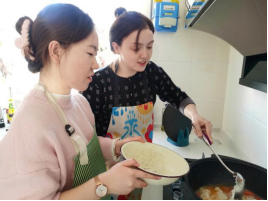 张雅莉特别想学习新疆特色菜的做法,等回甘肃老家时做给家人品尝。终于在两人共同休息的时间,她们开启了美食教学小课堂,两人准备了需要的食材,古丽尼尕尔·阿不力米提一步一步给张雅莉教做饭,学有所成后,两人激动的品尝着美食。就这样,古丽尼尕尔·阿不力米提和张雅莉成了形影不离、无话不说的好闺蜜。