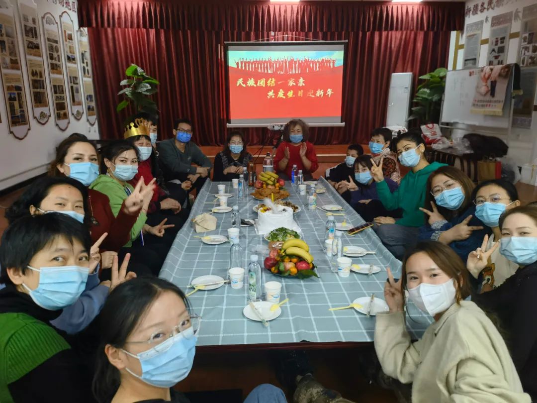 在克拉玛依市独山子区金山路街道第四社区的活动室里,马木提·斯迪克邀请邻居们一起给姚淑美庆祝生日。