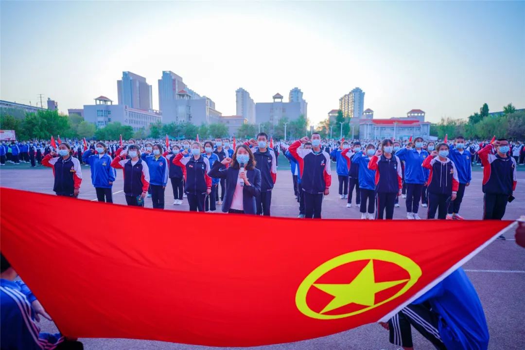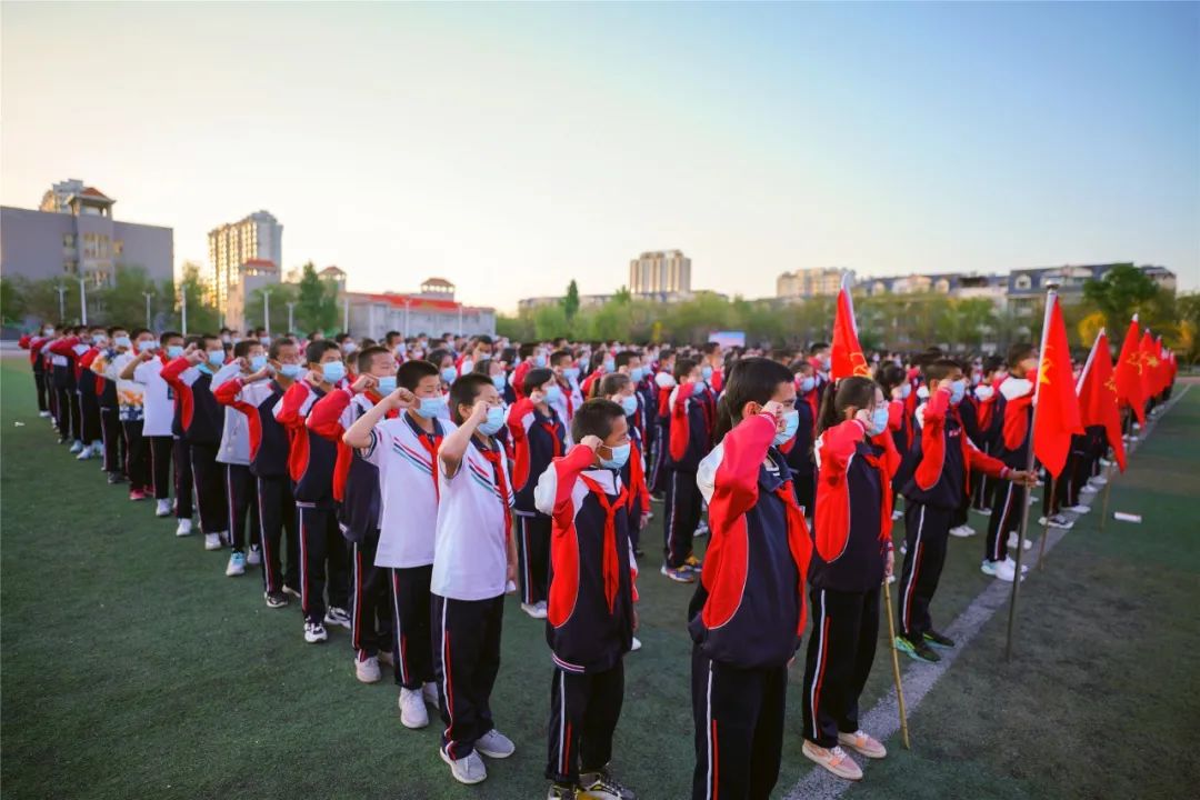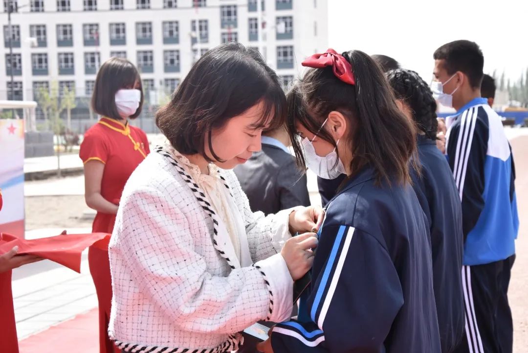 在五四青年节到来之际,昌吉回族自治州昌吉市第七中学举行14岁“青春礼”暨离队入团仪式,满14周岁的学生在老师的祝福声中,告别金色童年,启航青春梦想,有79名学生光荣加入共青团。