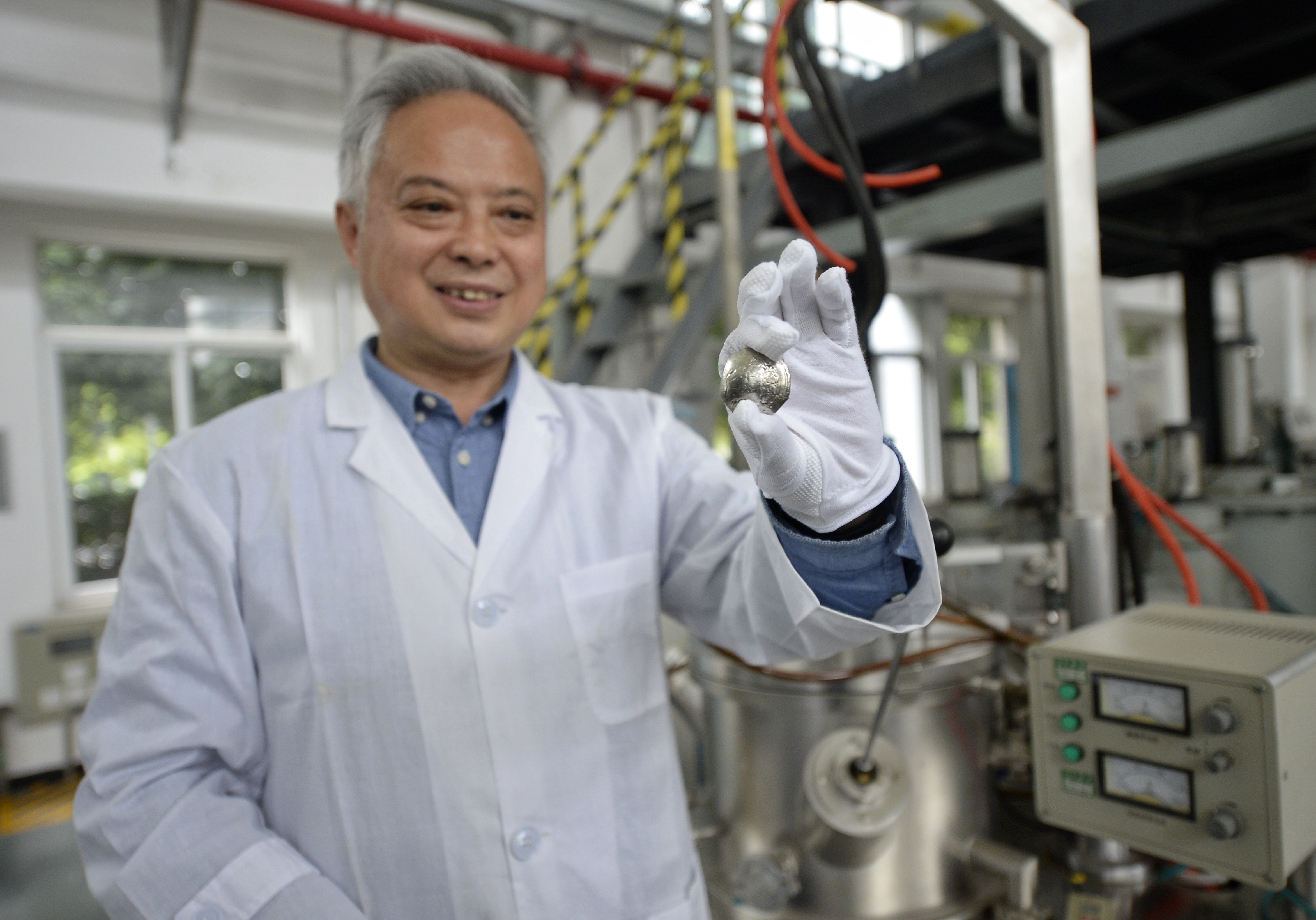 5月24日,赵文金在展示N36新型锆合金包壳管样品。新华社记者 刘坤 摄