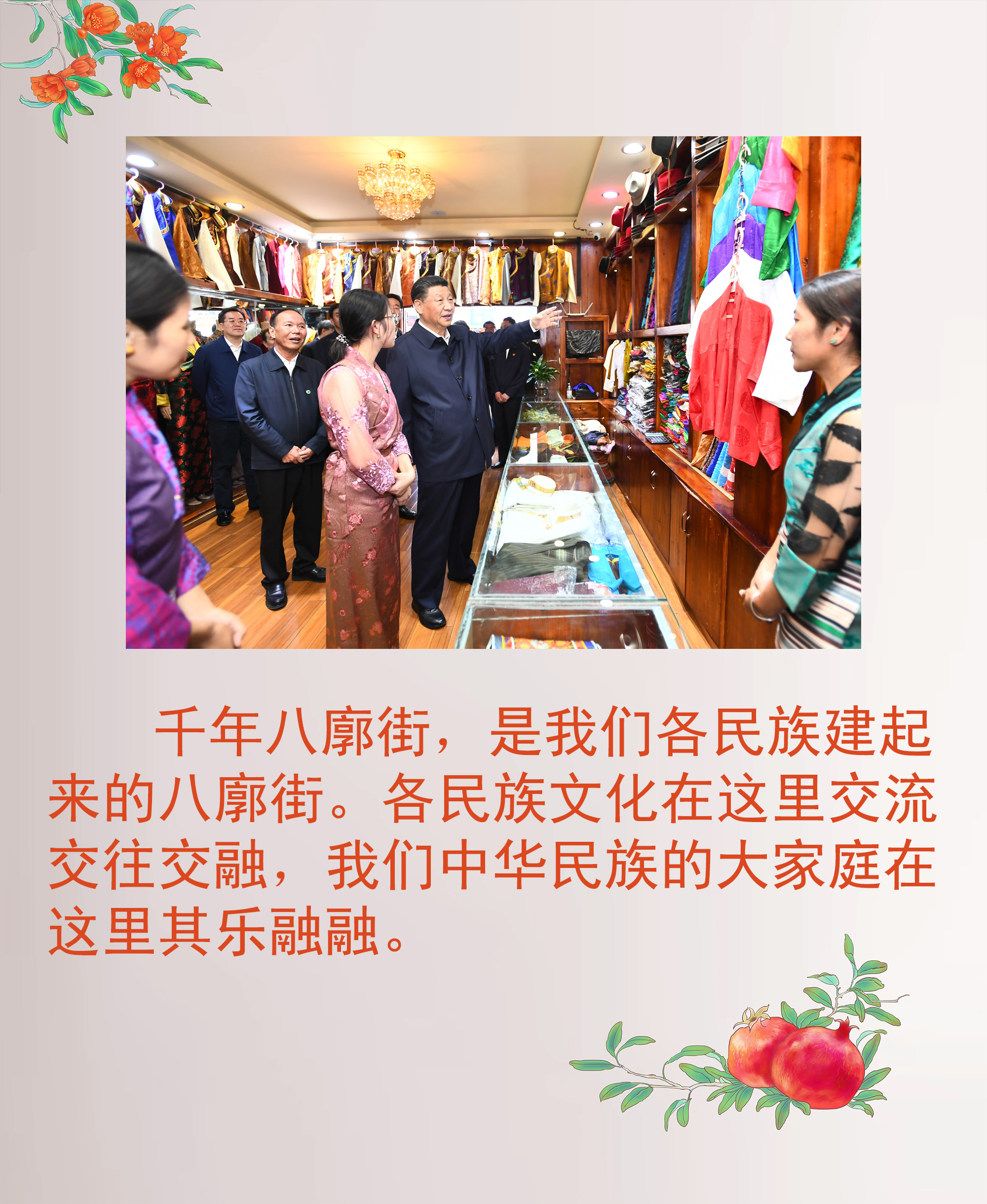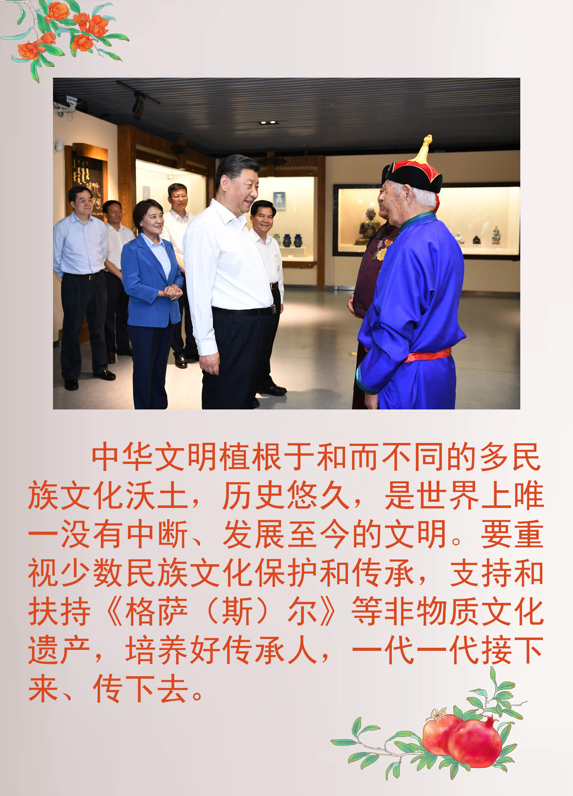 7月12日至15日,中共中央总书记、国家主席、中央军委主席习近平在新疆考察。 13日上午,习近平来到新疆维吾尔自治区博物馆,参观《新疆历史文物展》,观看民族史诗《玛纳斯》说唱展示,并同《玛纳斯》非物质文化遗产传承人亲切交谈。习近平指出,中华文明博大精深、源远流长,是由各民族优秀文化百川汇流而成。 2021年7月22日下午,习近平在位于西藏拉萨市老城区的八廓街,走进特色商品店,询问旅游文创产业发展、藏文化传承保护等情况。 2021年4月27日上午,习近平在南宁市广西民族博物馆外,同参加三月三“歌圩节”民族文化活动的各族群众亲切交流。 2020年6月8日,习近平在宁夏吴忠市利通区金花园社区广场上,同居民们亲切交流。 2019年7月15日上午,习近平在内蒙古赤峰博物馆同古典民族史诗《格萨(斯)尔》非物质文化遗产传承人亲切交谈。 不断铸牢中华民族共同体意识 促进各民族像石榴籽一样紧紧拥抱在一起 共建美好家园 共创美好未来 总监制:袁炳忠 监制:孙承斌 策划:刘洁 郑卫 兰红光 赖向东 王建华 统筹:鱼澜 毕晓洋 宋为伟 摄影:李学仁 谢环驰 燕雁 编辑:王海燕 任军川 王鹏 韦大甘 张宏祥 晋美多吉 陈海通 李京 虞东升