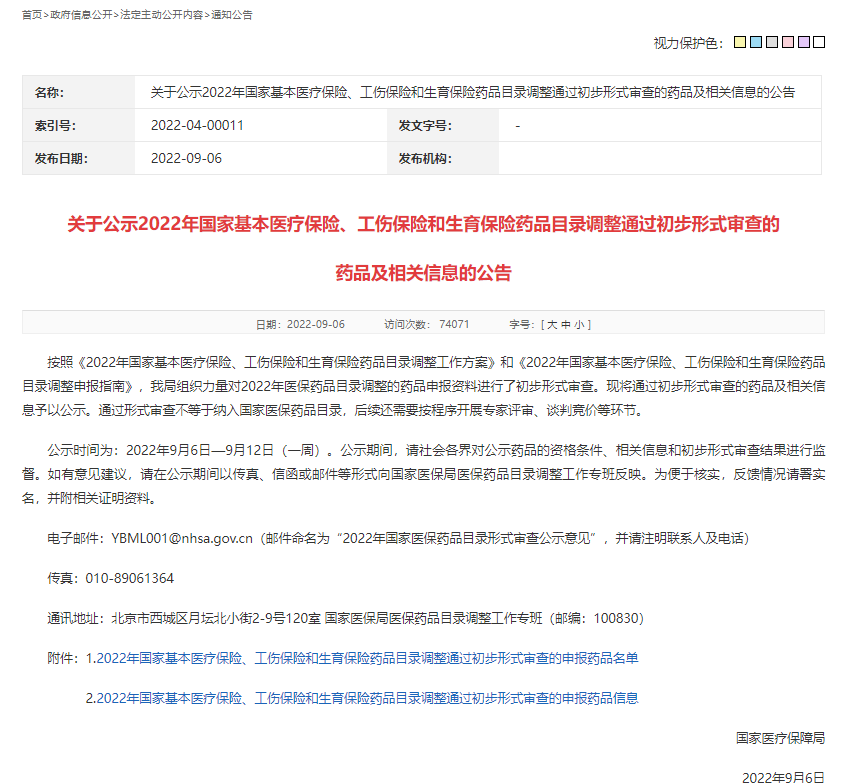 根据2022年国家基本医疗保险、工伤保险和生育保险药品目录(以下简称国家医保药品目录)调整工作安排,国家医保局近期对申报药品进行了初步形式审查,并对通过审查的药品和信息进行了公示。现就有关工作情况解读如下。