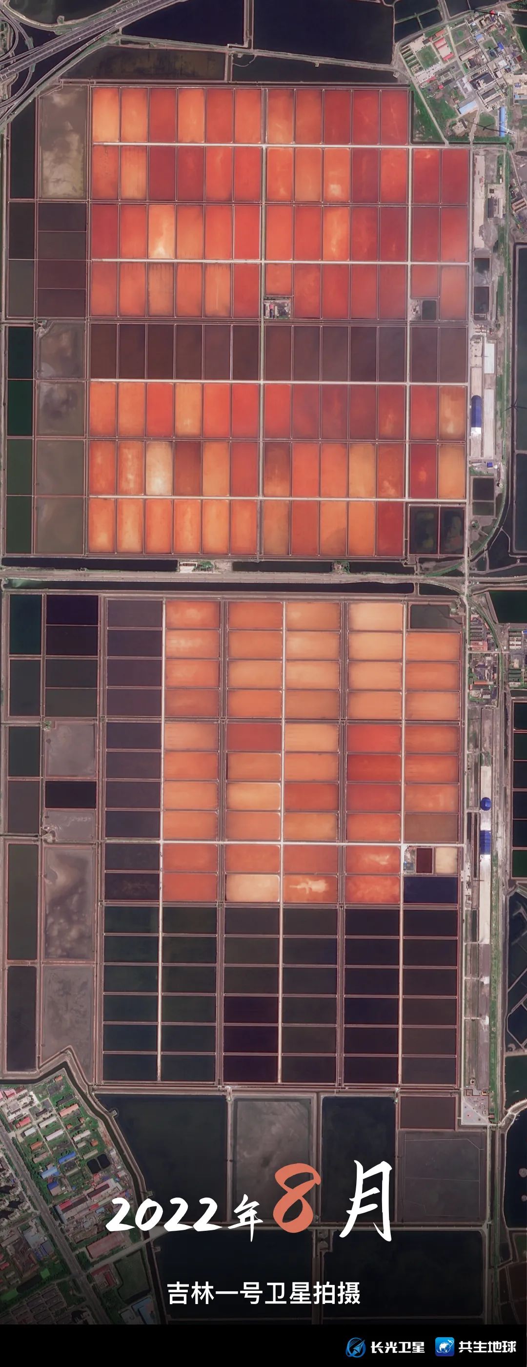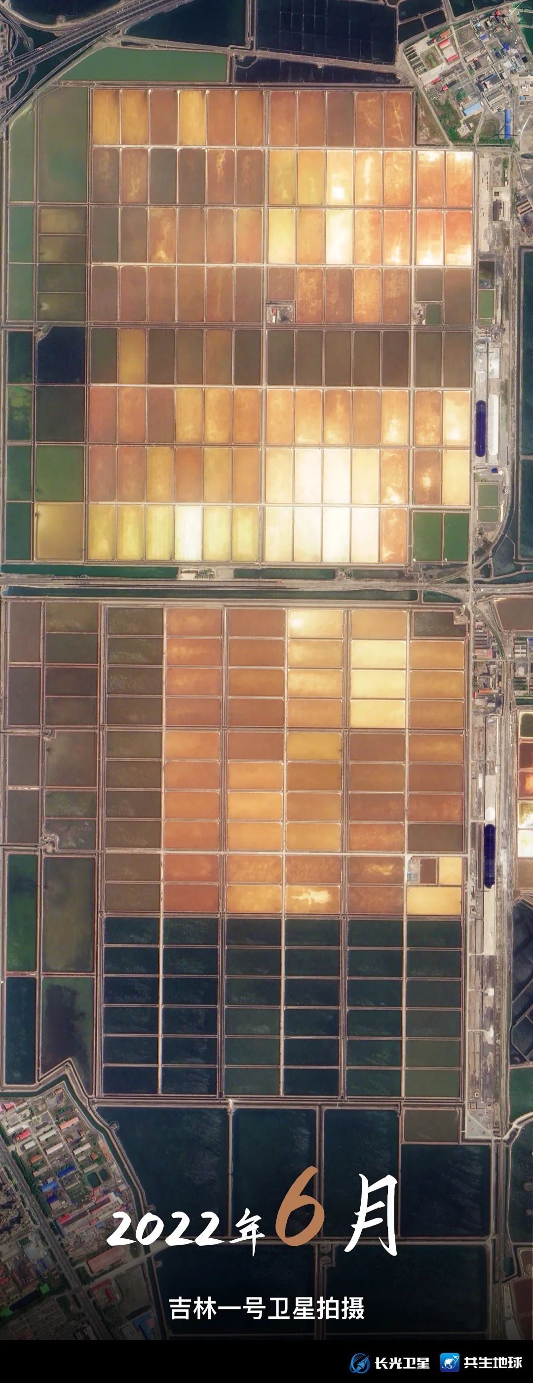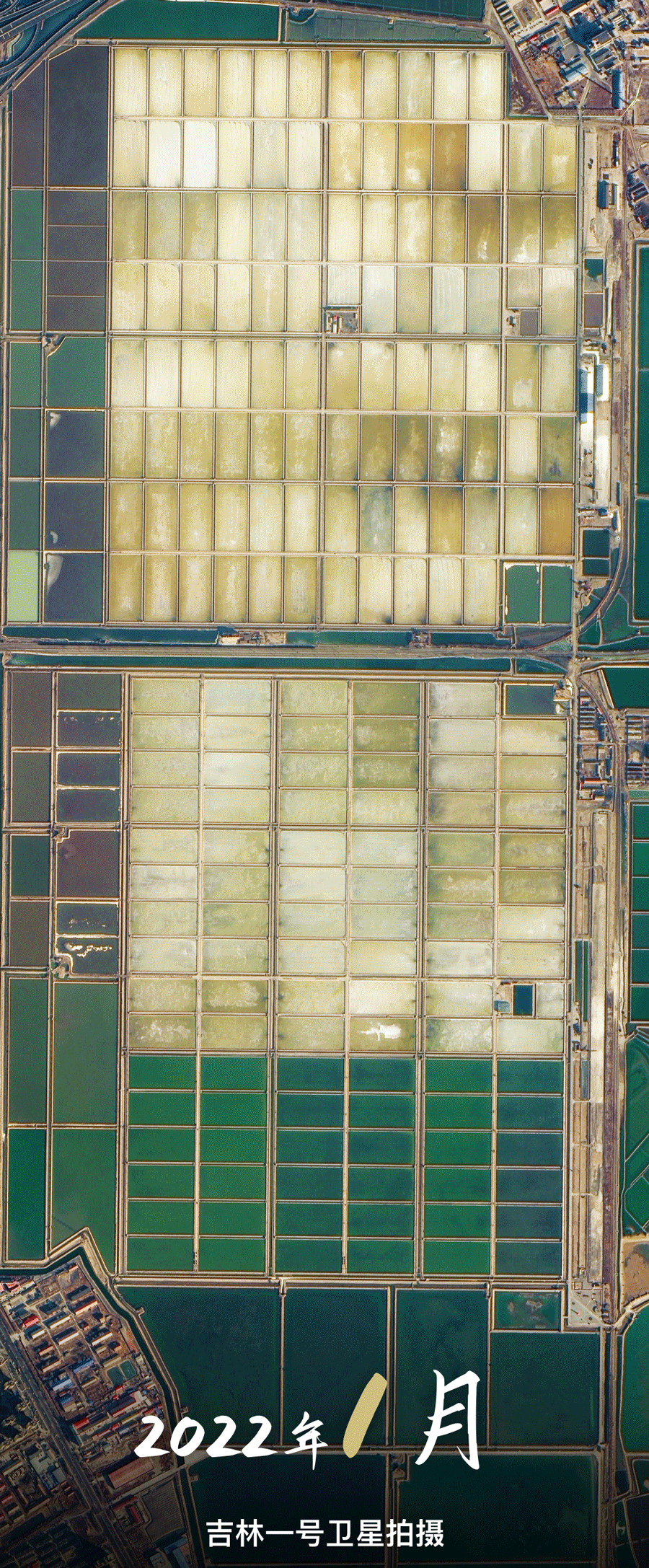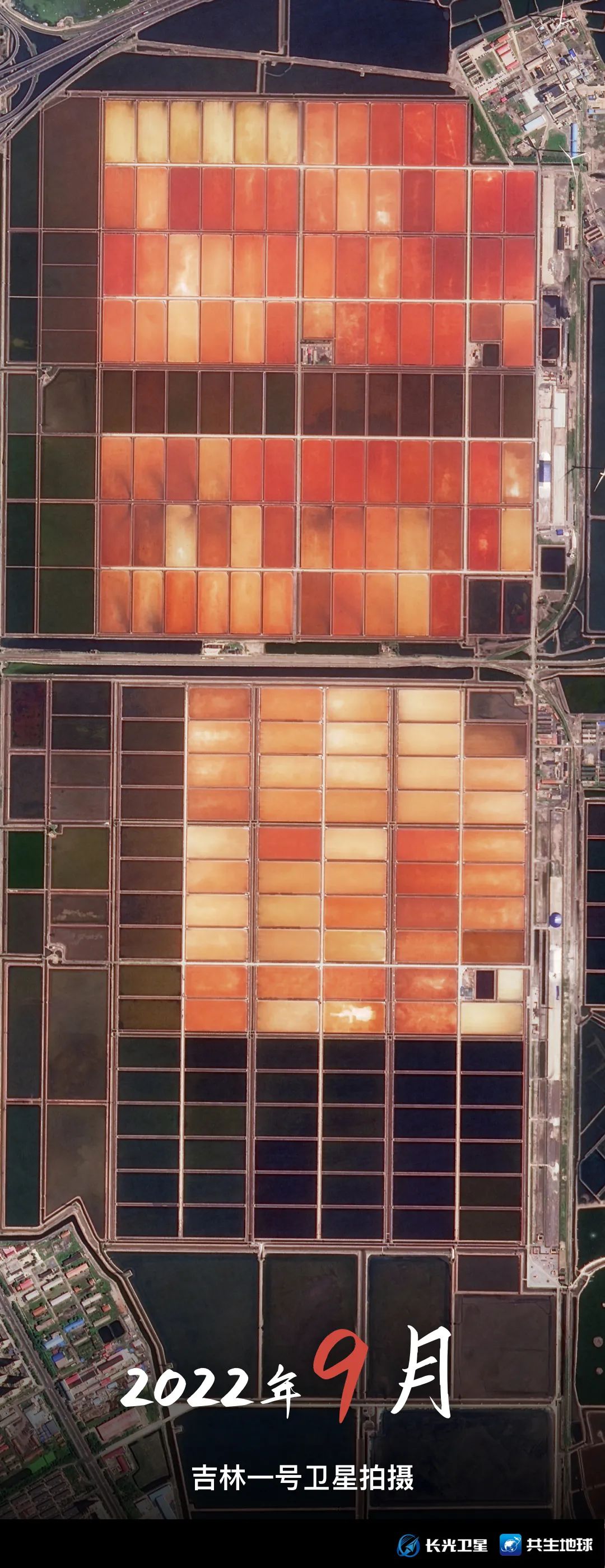 跟随吉林一号卫星视角,带你回顾1月至9月,天津长芦汉沽盐田“调色盘”的颜色变化。你更喜欢哪个月份的“色号”呢?
